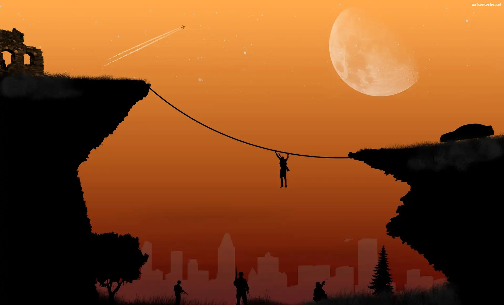 Człowiek, Przepaść, Lina na Komórkę