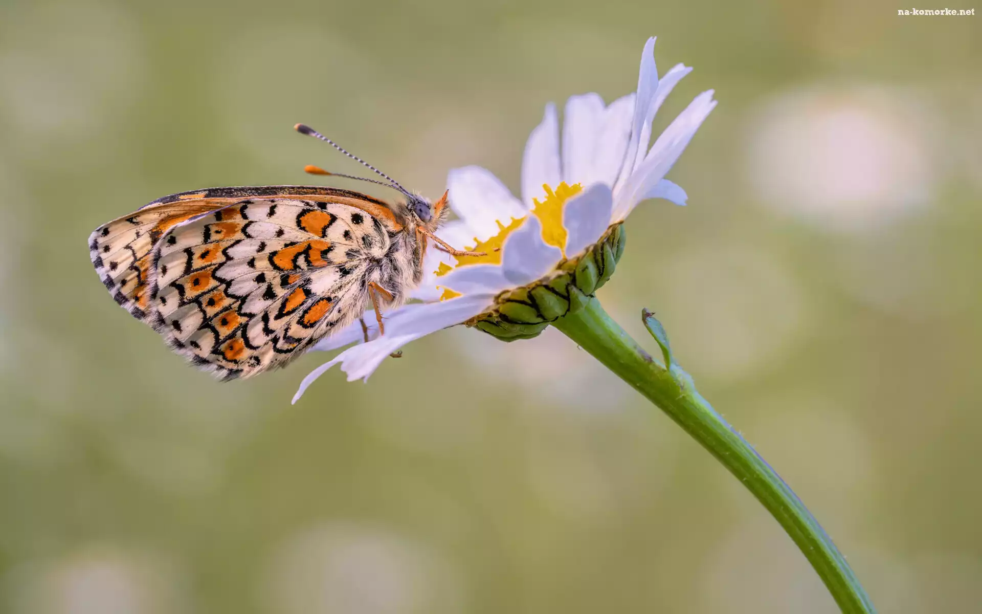 Motyl, Kwiat, Margerytka, Przeplatka cinksia, Roślina na Komórkę
