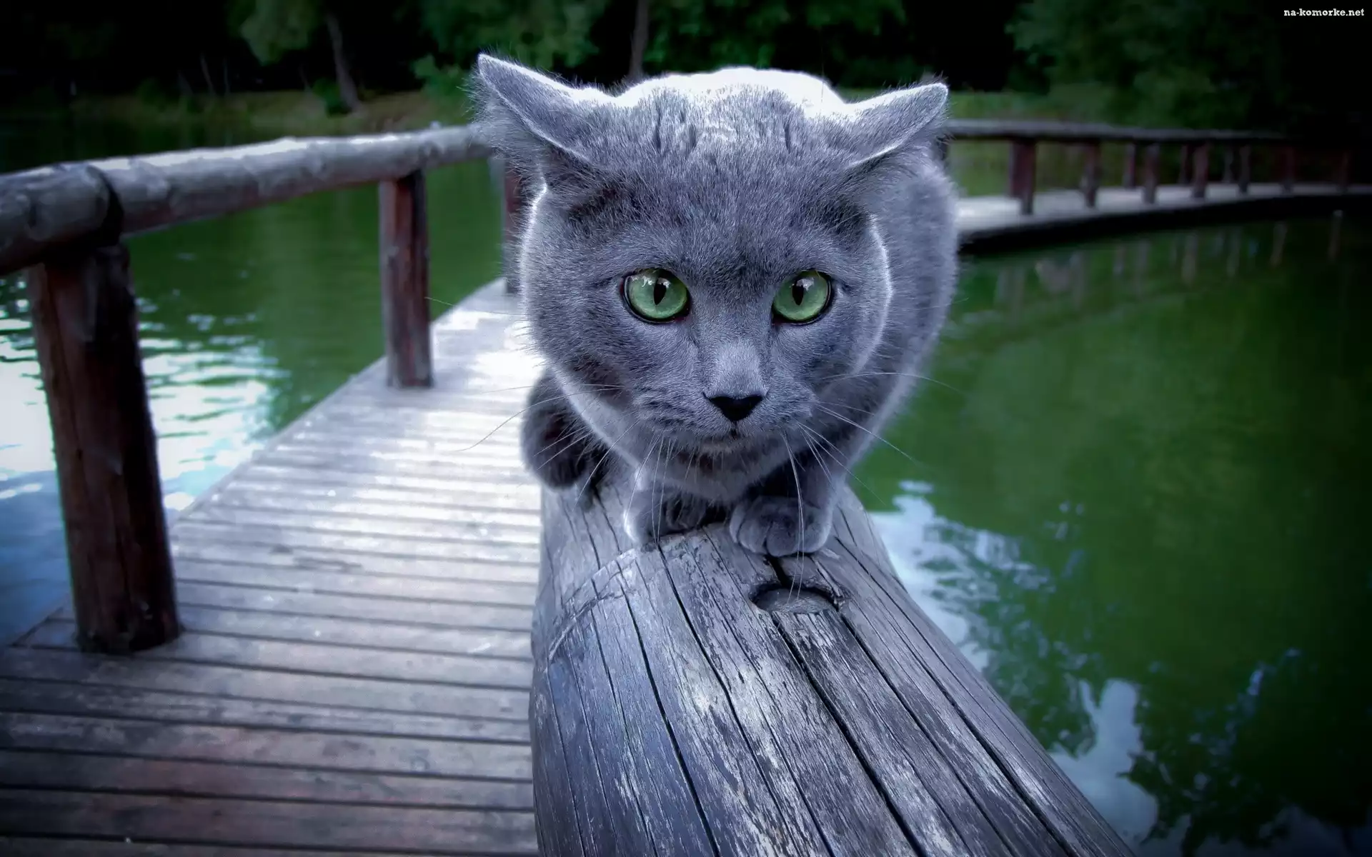 Przestraszony, Most, Kot, Drewniany na Komórkę