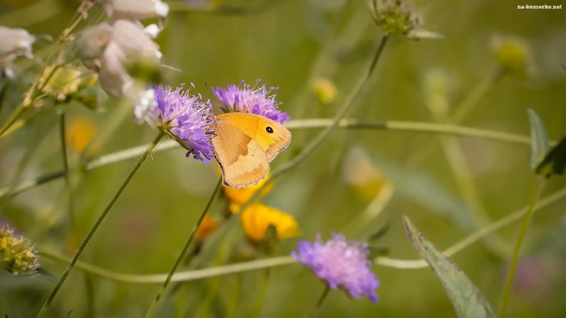 Motyl, Przestrojnik jurtina, Fioletowe, Kwiaty na Komórkę