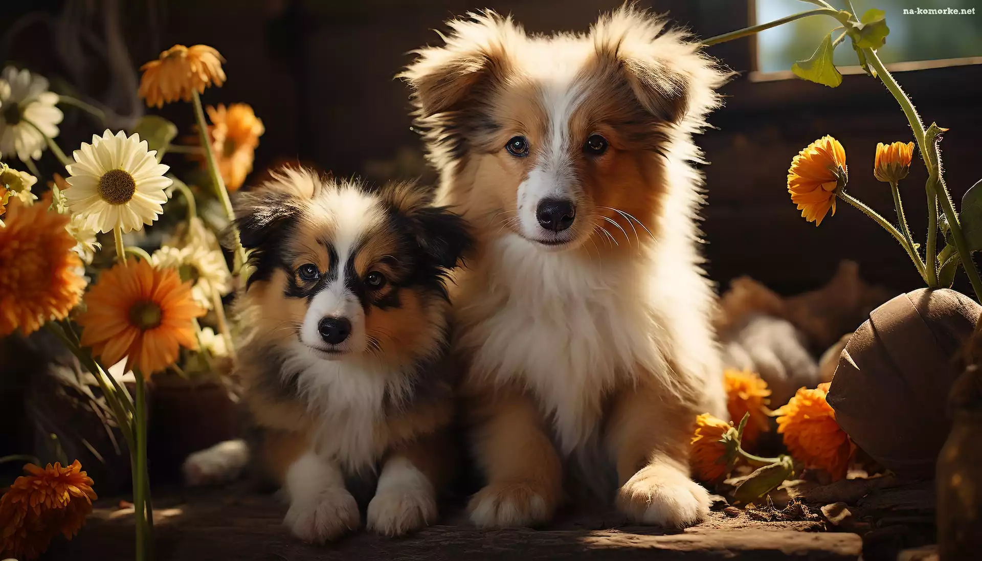 Szczeniaki, Kwiaty, Dwa, Psy na Komórkę