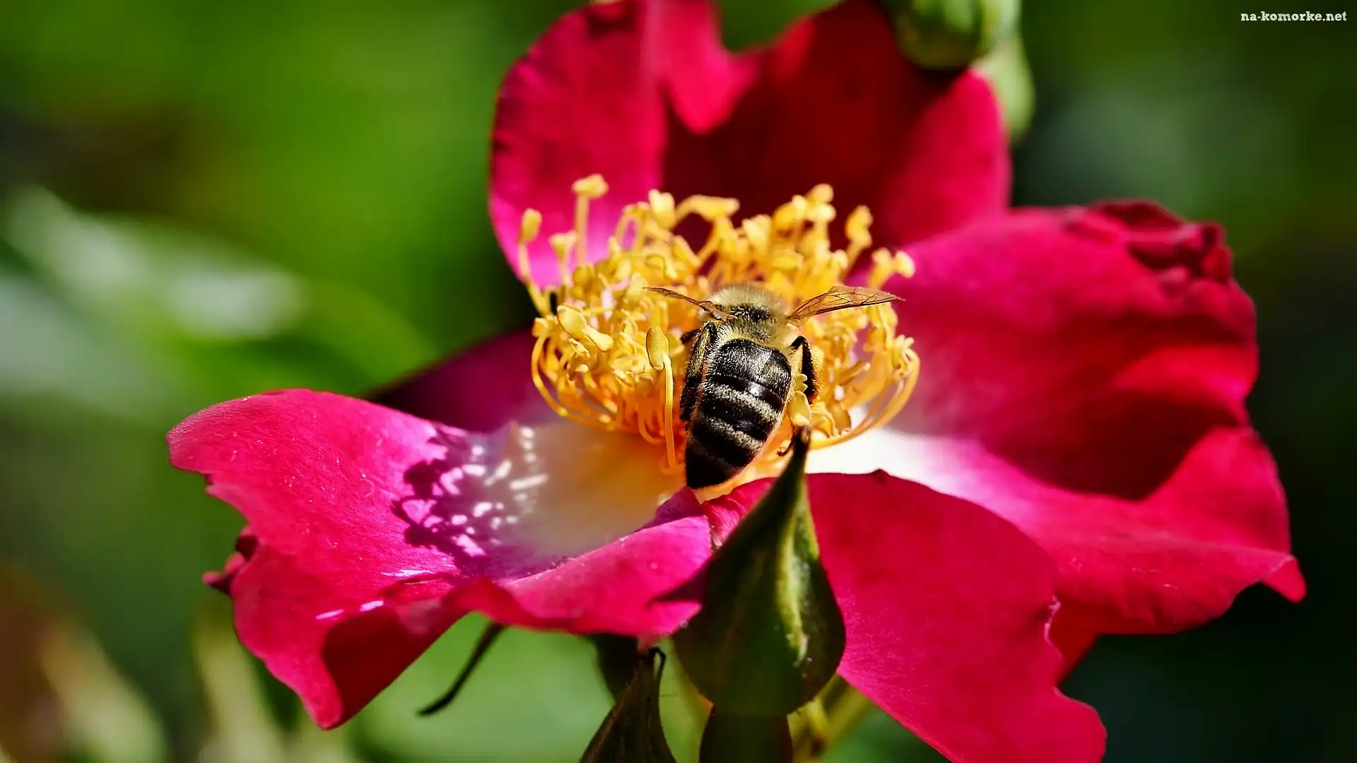Pszczoła, Czerwona, Dzika róża, Żółte, Pręciki na Komórkę