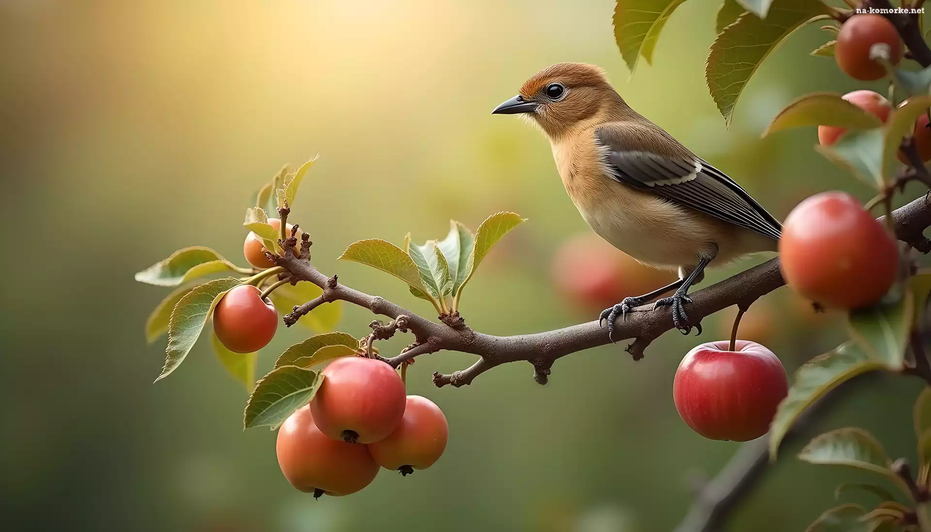 Gałązka, Jabłka, Brązowy, Ptak na Komórkę