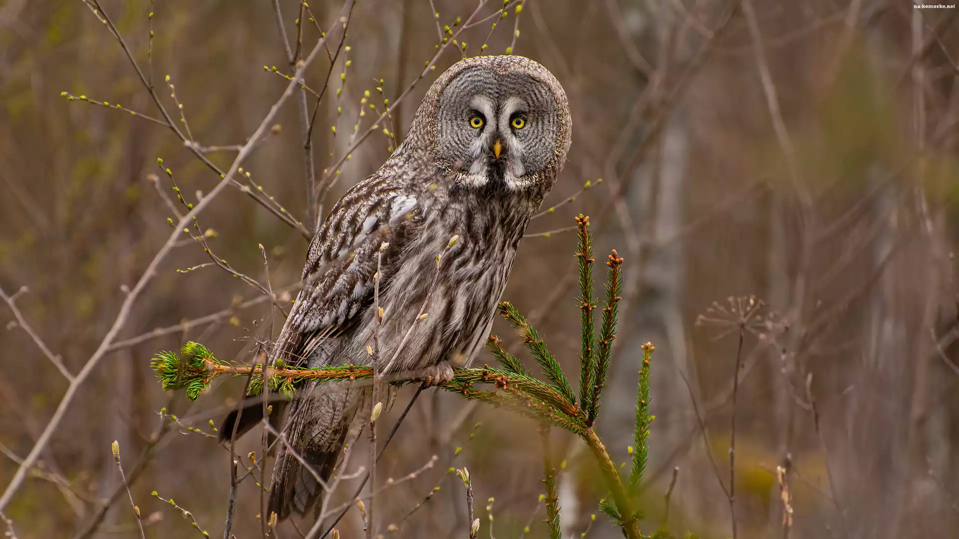 Sowa, Ptak, Puszczyk mszarny, Gałązka na Komórkę