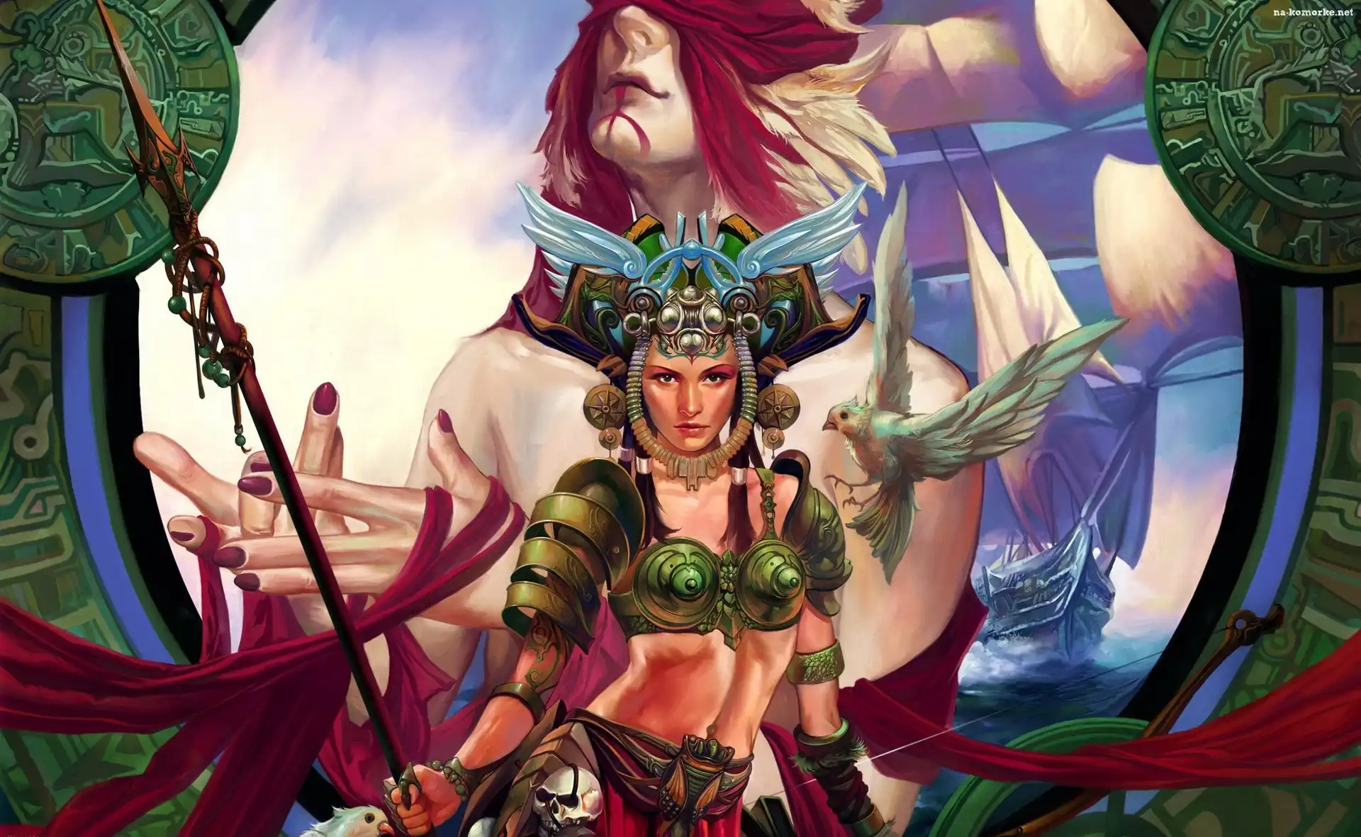 Ptak, Kobieta, Zbroja, Tarcza, Dłonie na Komórkę