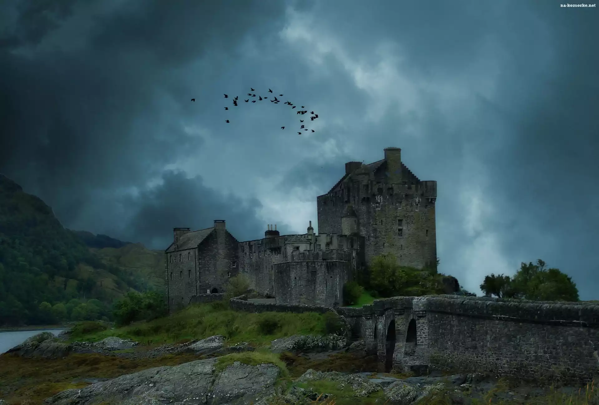 Ptaki, Szkocja, Wzgórze, Zamek Doune Castle, Wieczór na Komórkę