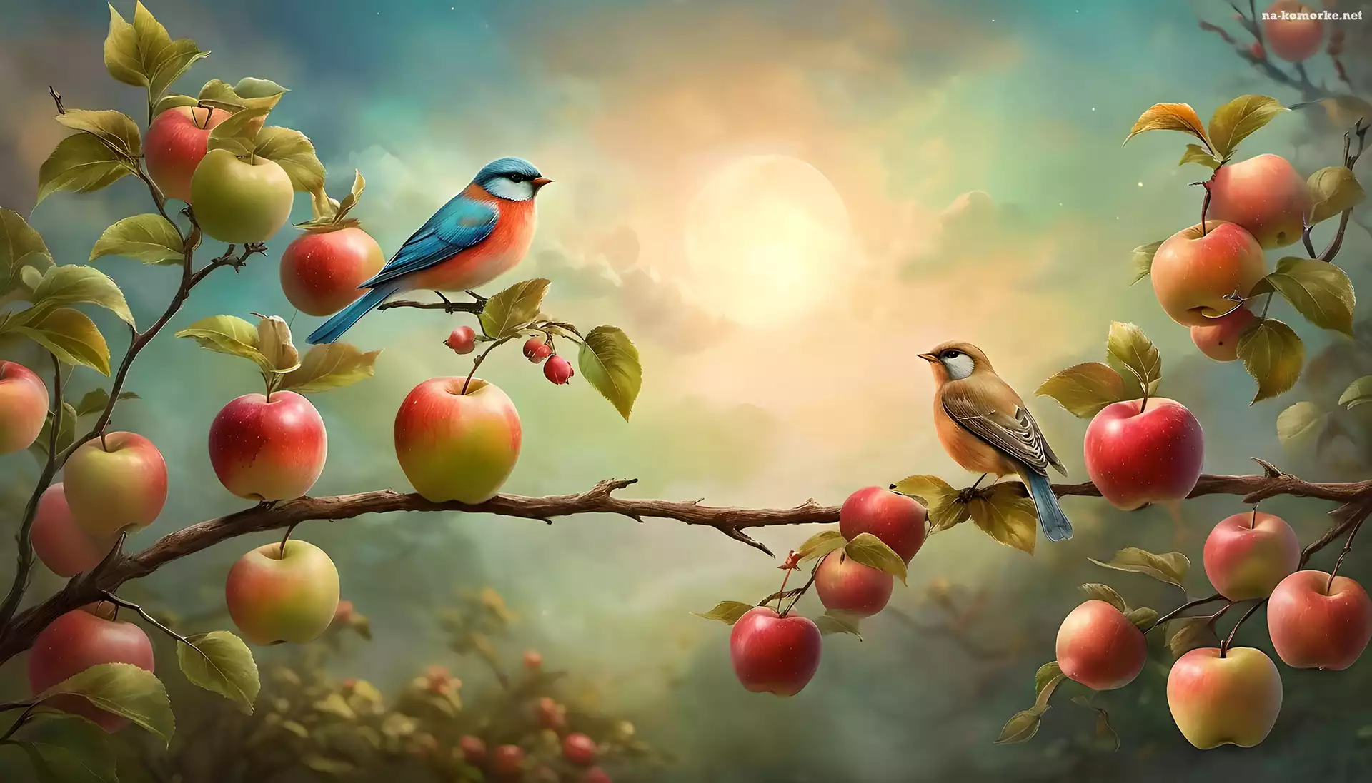 Jabłka, Grafika, Kolorowe, Ptaki na Komórkę