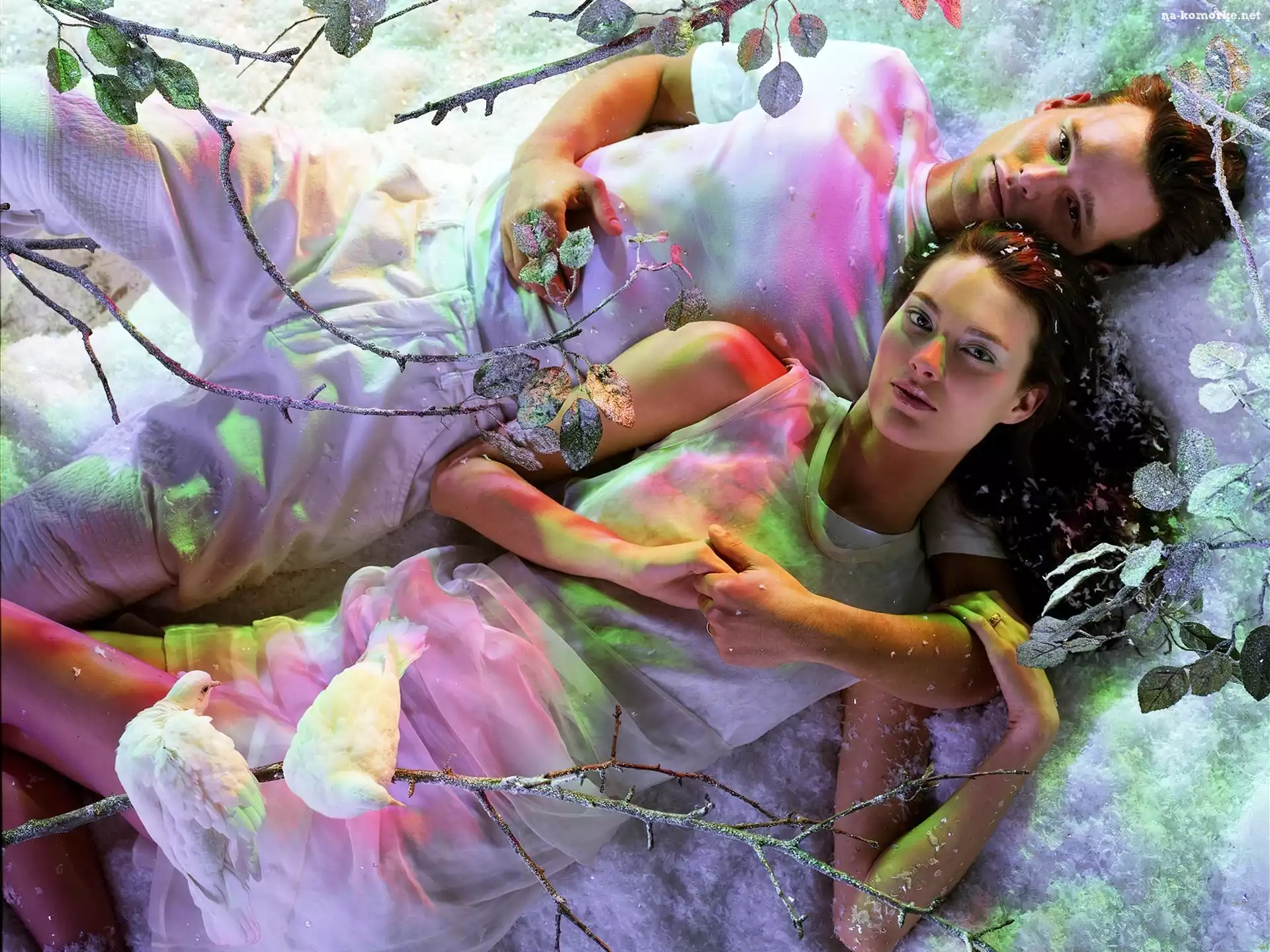 Śniegu, Kobieta, Mężczyzna, Ptaki, Płatki na Komórkę