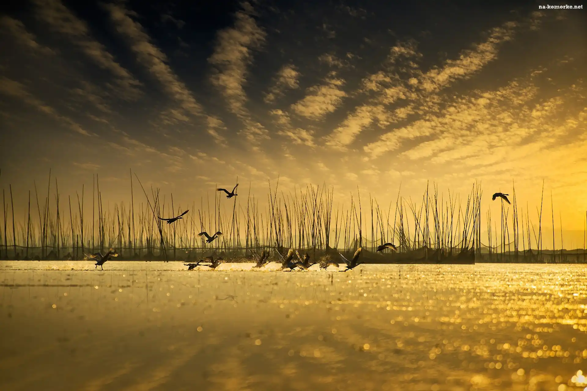 Ptaki, Trzcina, Jezioro, Gęsi, Latające, Dzikie na Komórkę