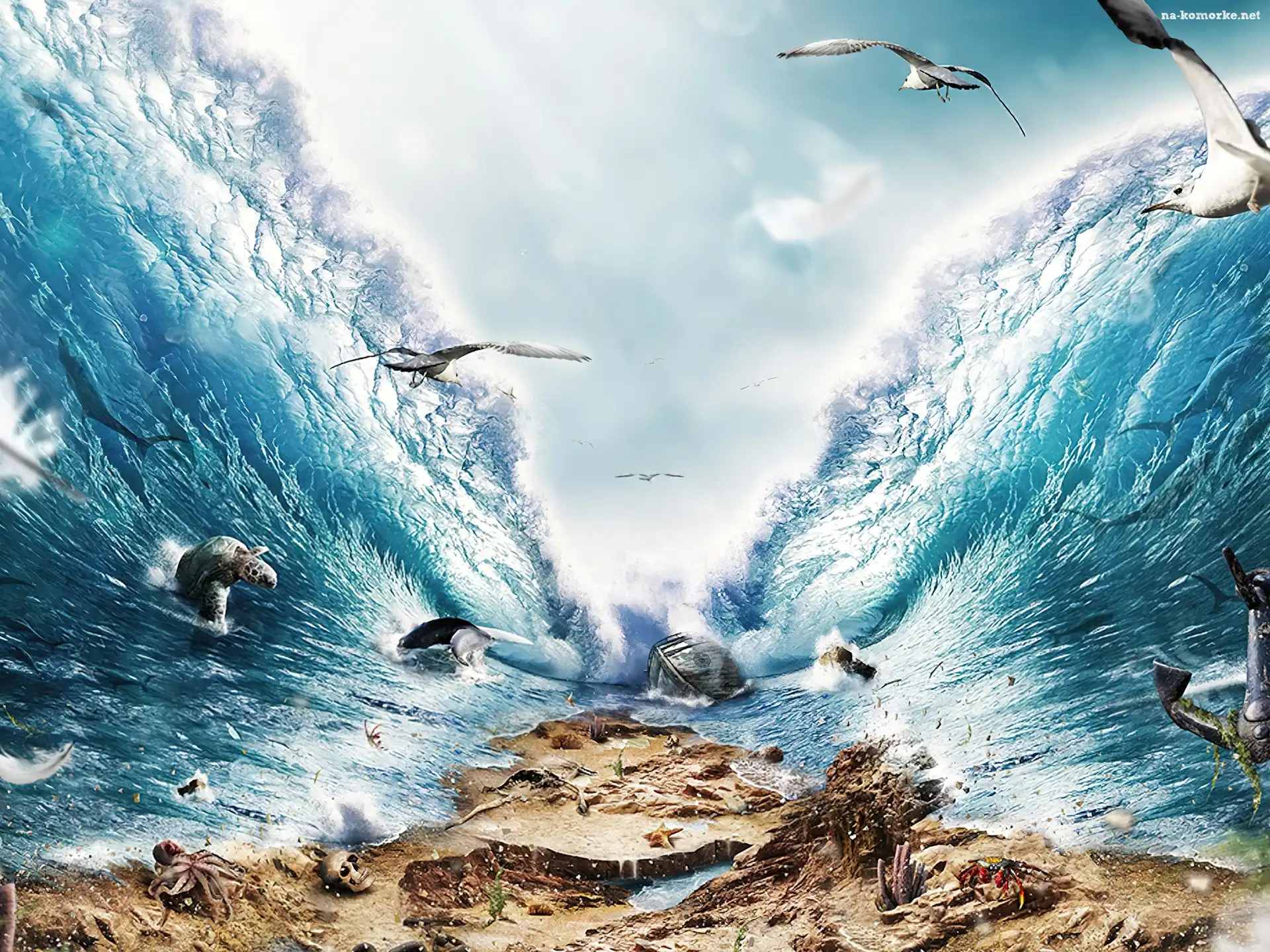 Ptaki, Ocean, Dno, Morskie, Zwierzęta na Komórkę