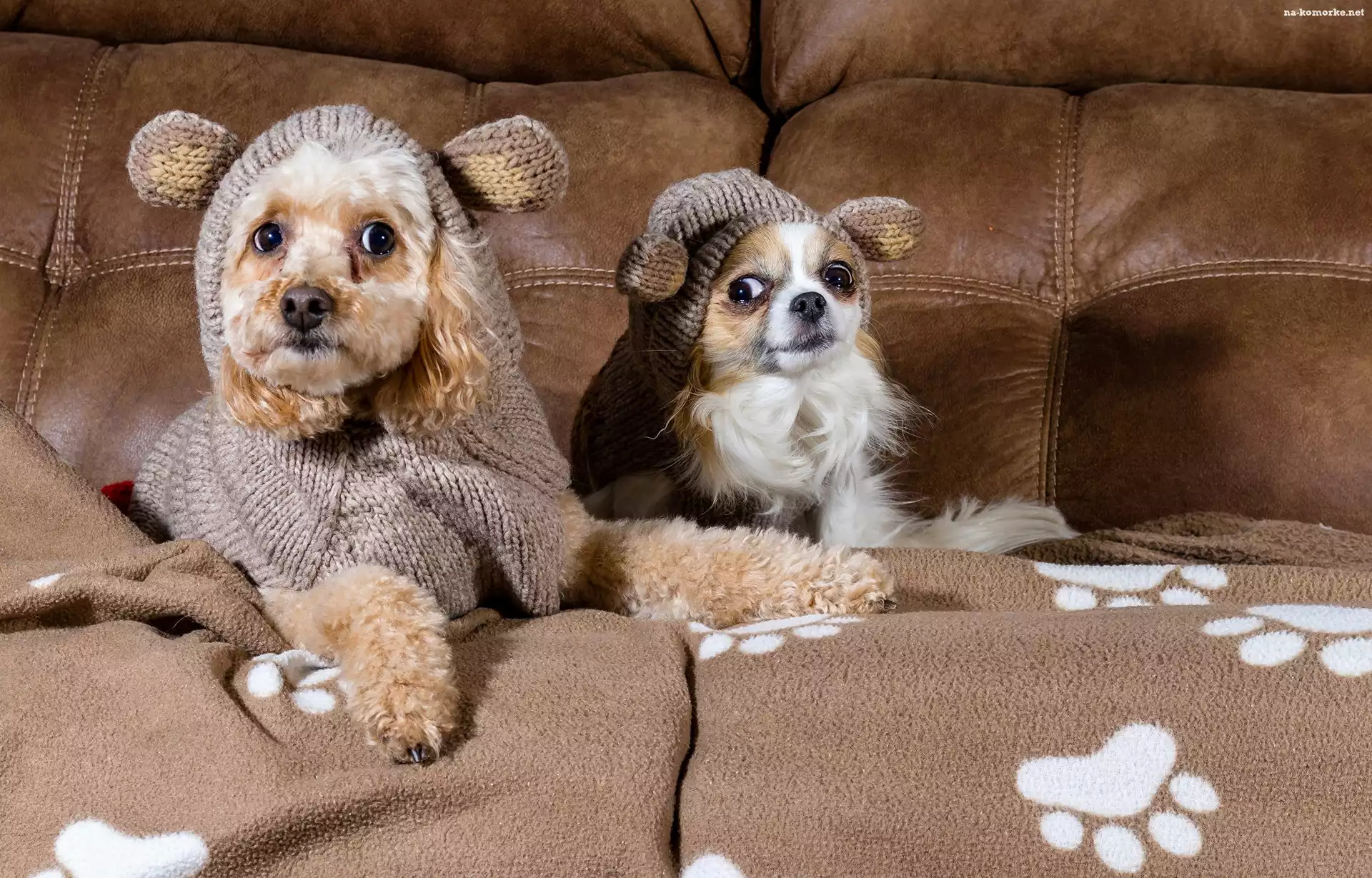 Pudel, Sofa, Chihuahua, Ubranka na Komórkę
