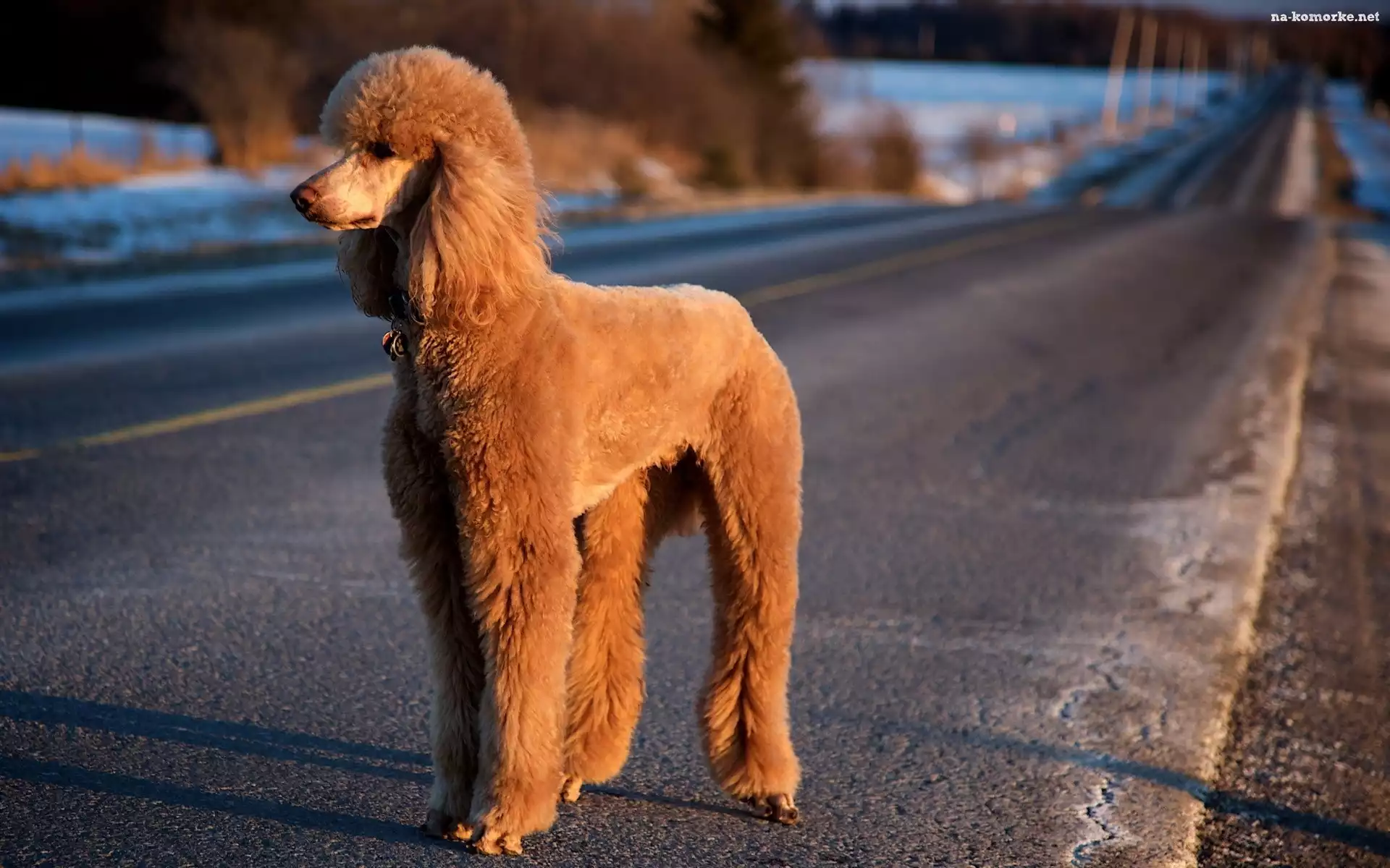 biały, Pudel duży Pudel, Czerwone, Róże Duży, Pudel, Droga