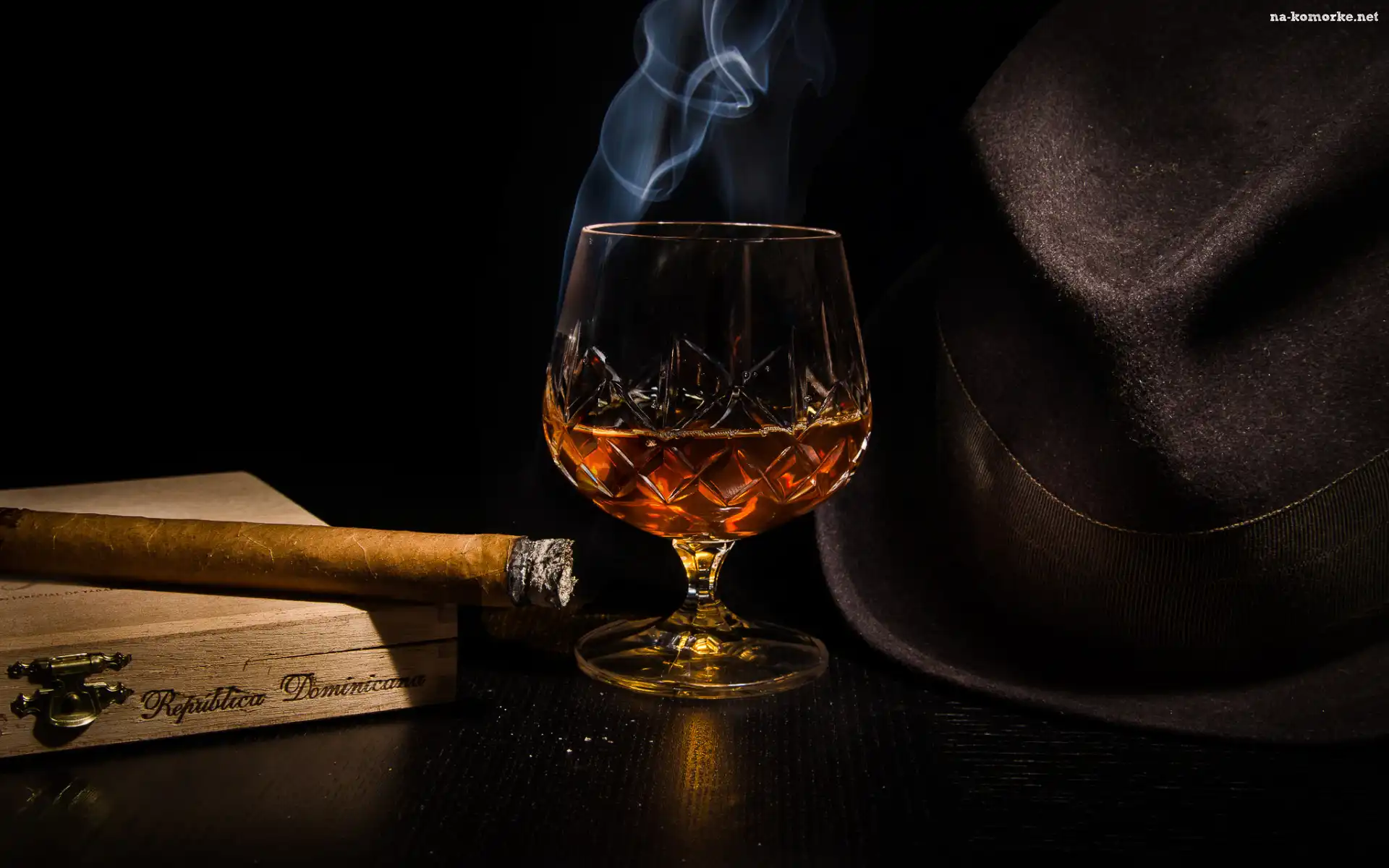 Kapelusz, Pudełko, Kompozycja, Kieliszek, Koniak, Cygaro, Dym na Komórkę