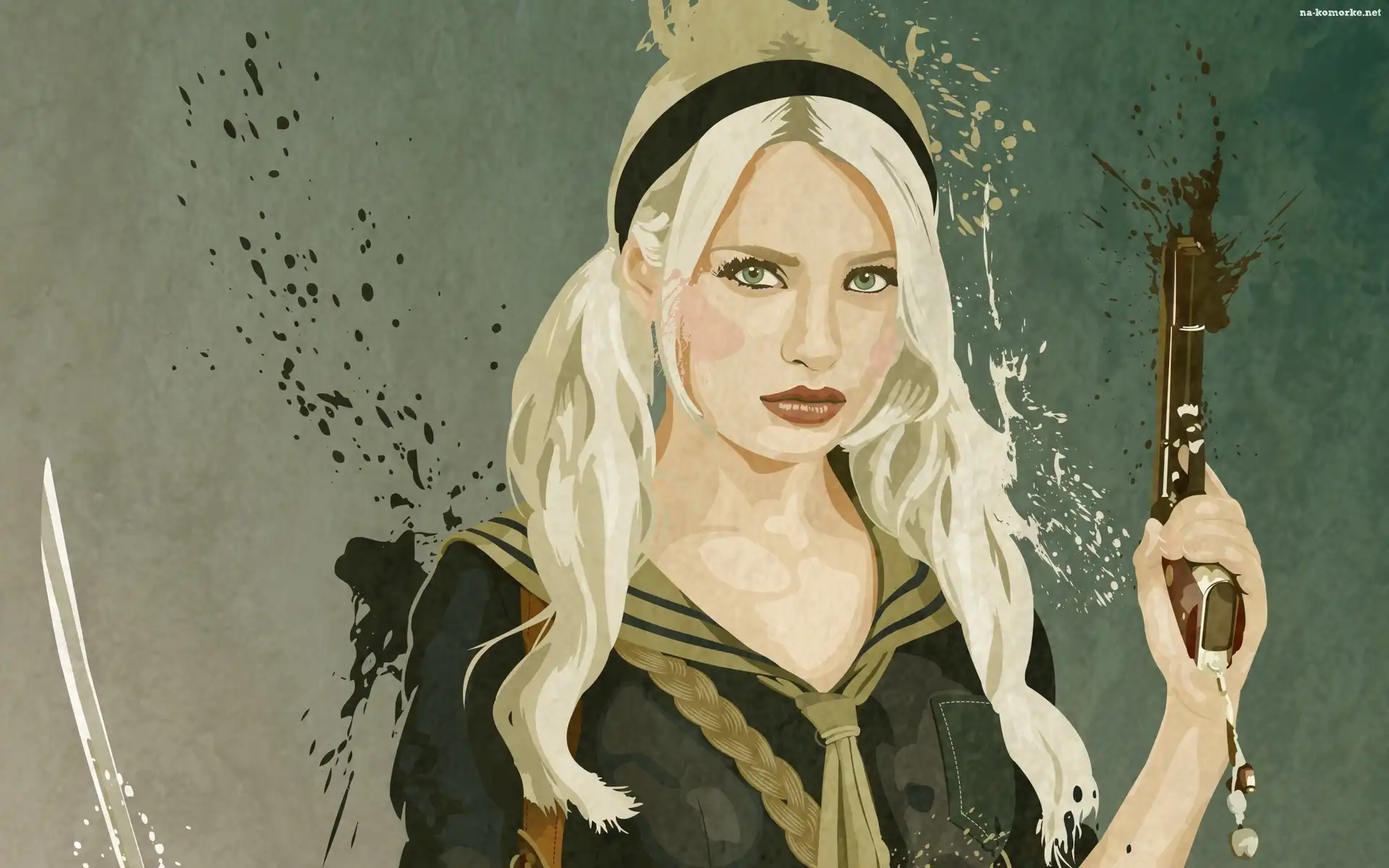 Dziewczyna, Pistolet, Rysunek, Aktorka, Emily Browning, Film, Sucker Punch na Komórkę