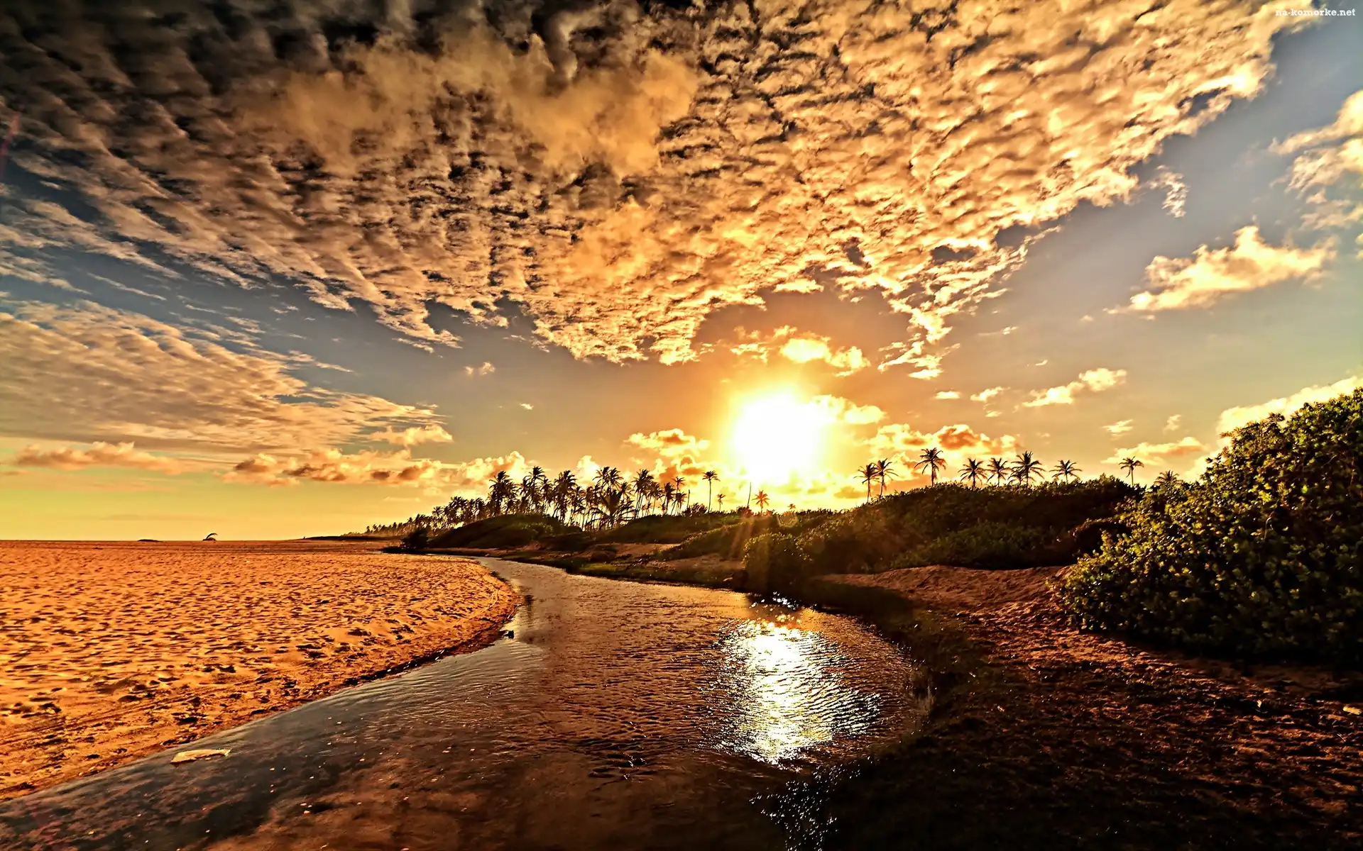 Pustynia, Chmury, Niebo, Palmy, Świt, Rzeka na Komórkę
