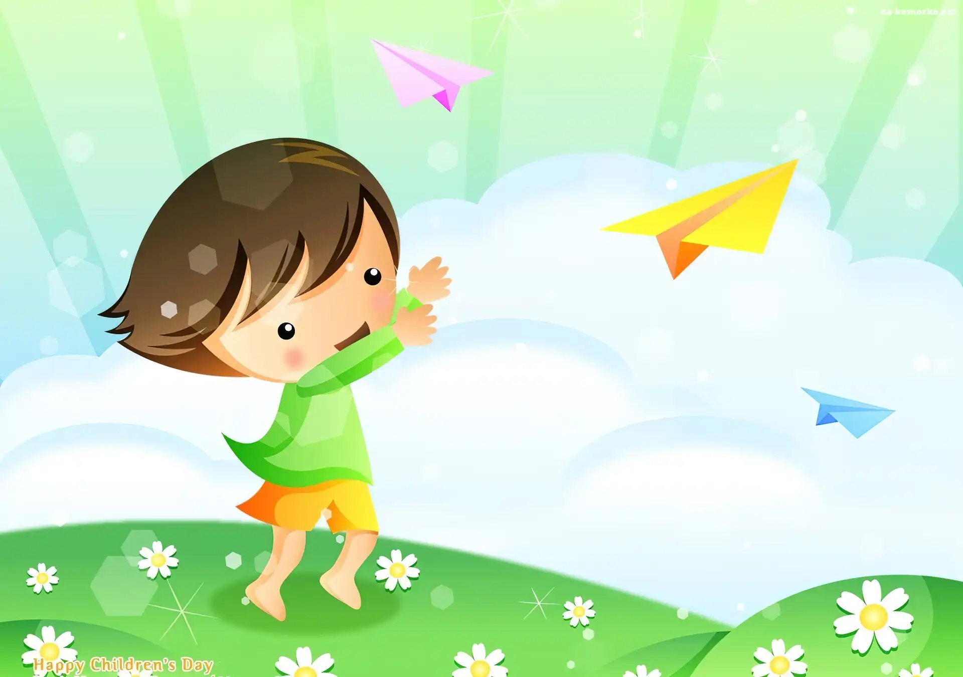 Radość, Dziecko, Łąka, Papierowe, Samoloty na Komórkę