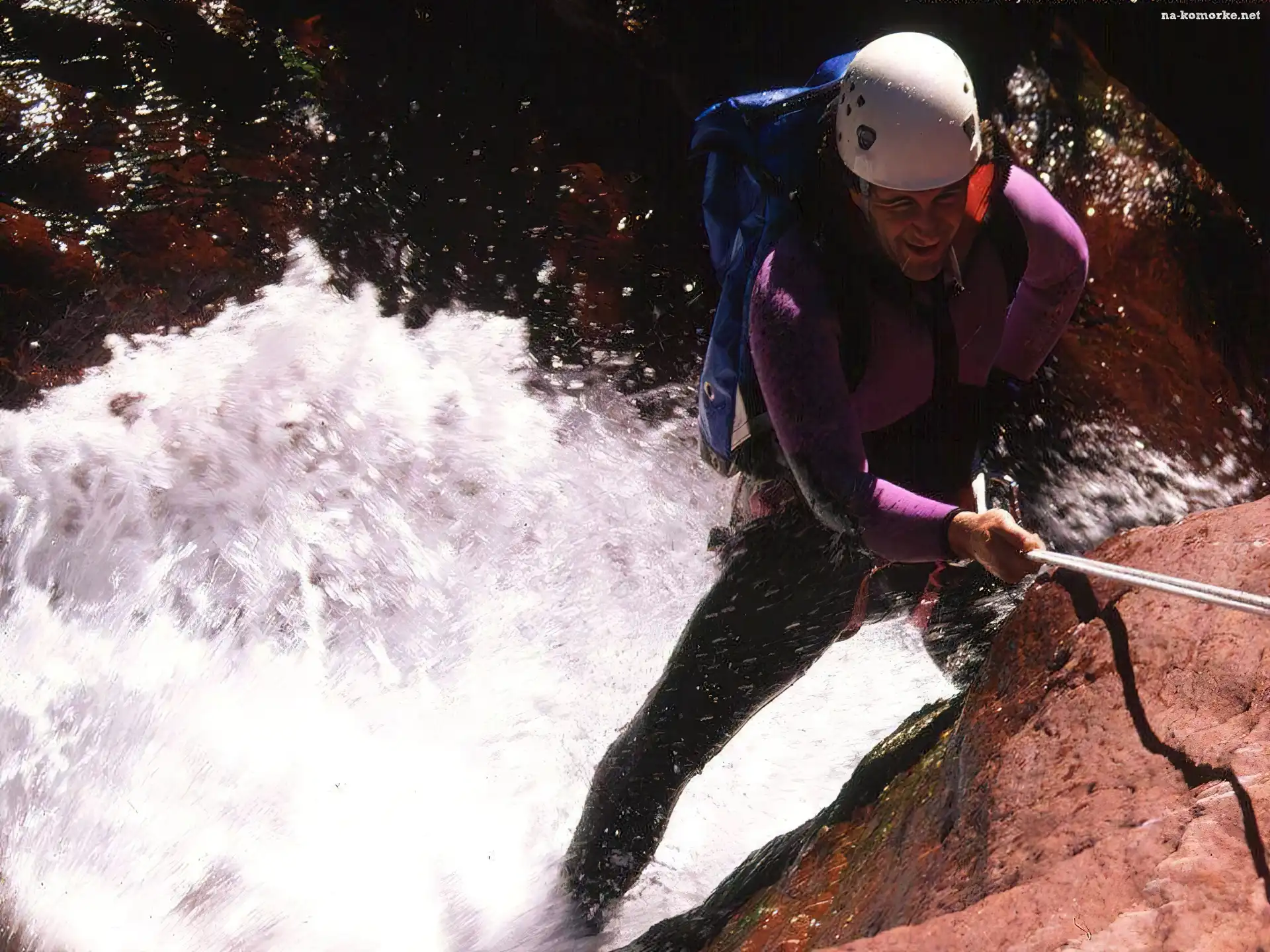 Rafting, wspinaczka, kask, rzeka na Komórkę