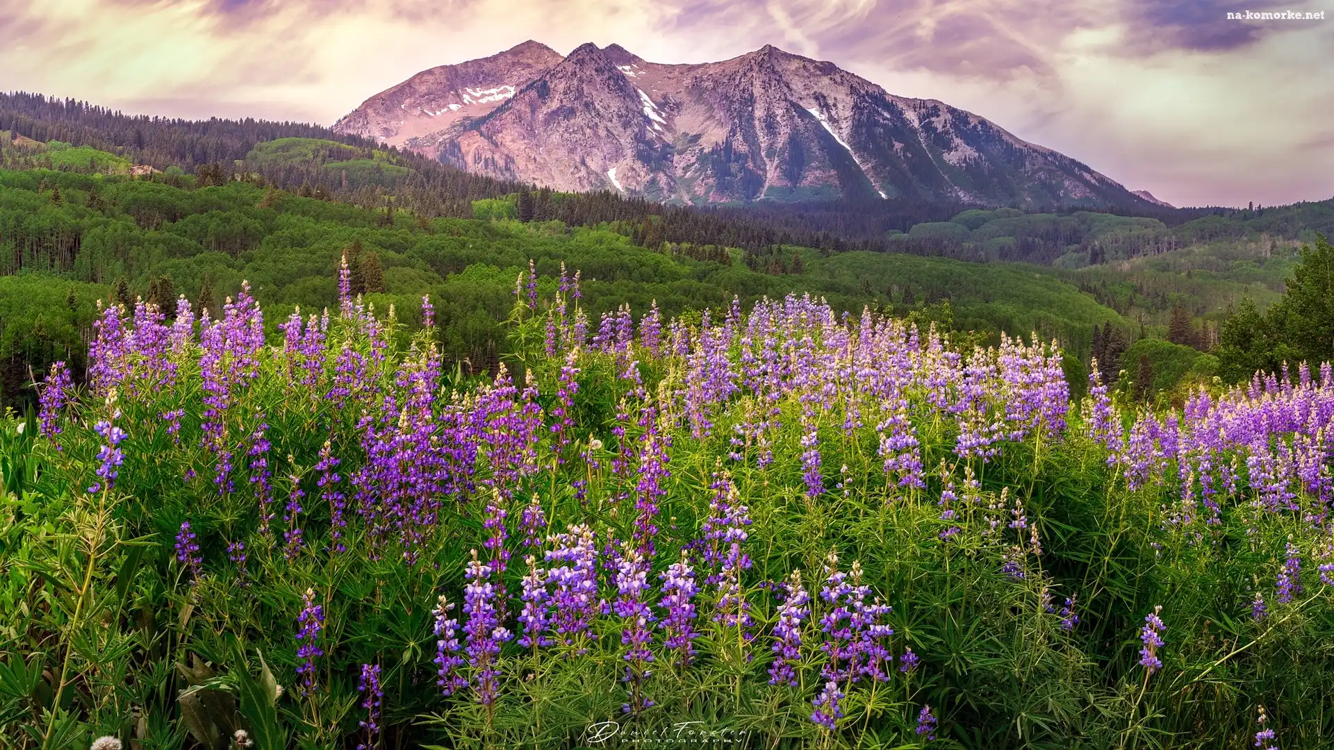 Góry, Stan Waszyngton, Kwiaty, Park Narodowy Mount Rainier, Łubin, Stany Zjednoczone, Łąka, Stratowulkan Mount Rainier na Komórkę |
