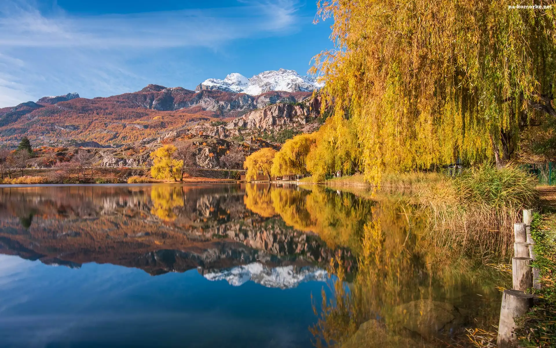 Góry, Jesień, Las, Francja, Drzewa, Odbicie, Jezioro Lac de la Roche de Rame, La Roche de Rame na Komórkę |