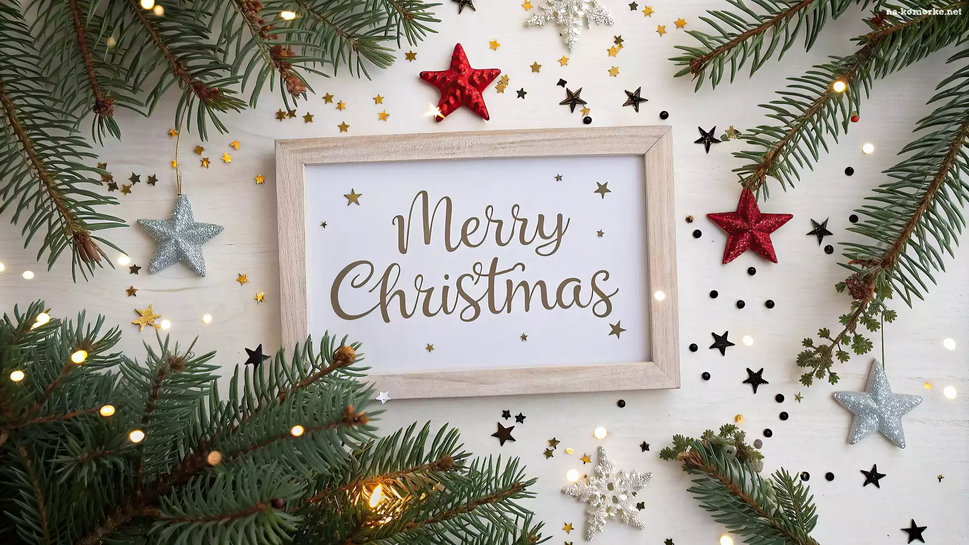 Ramka, Napis, Boże Narodzenie, Merry Christmas, Światełka, Gwiazdki, Gałązki na Komórkę