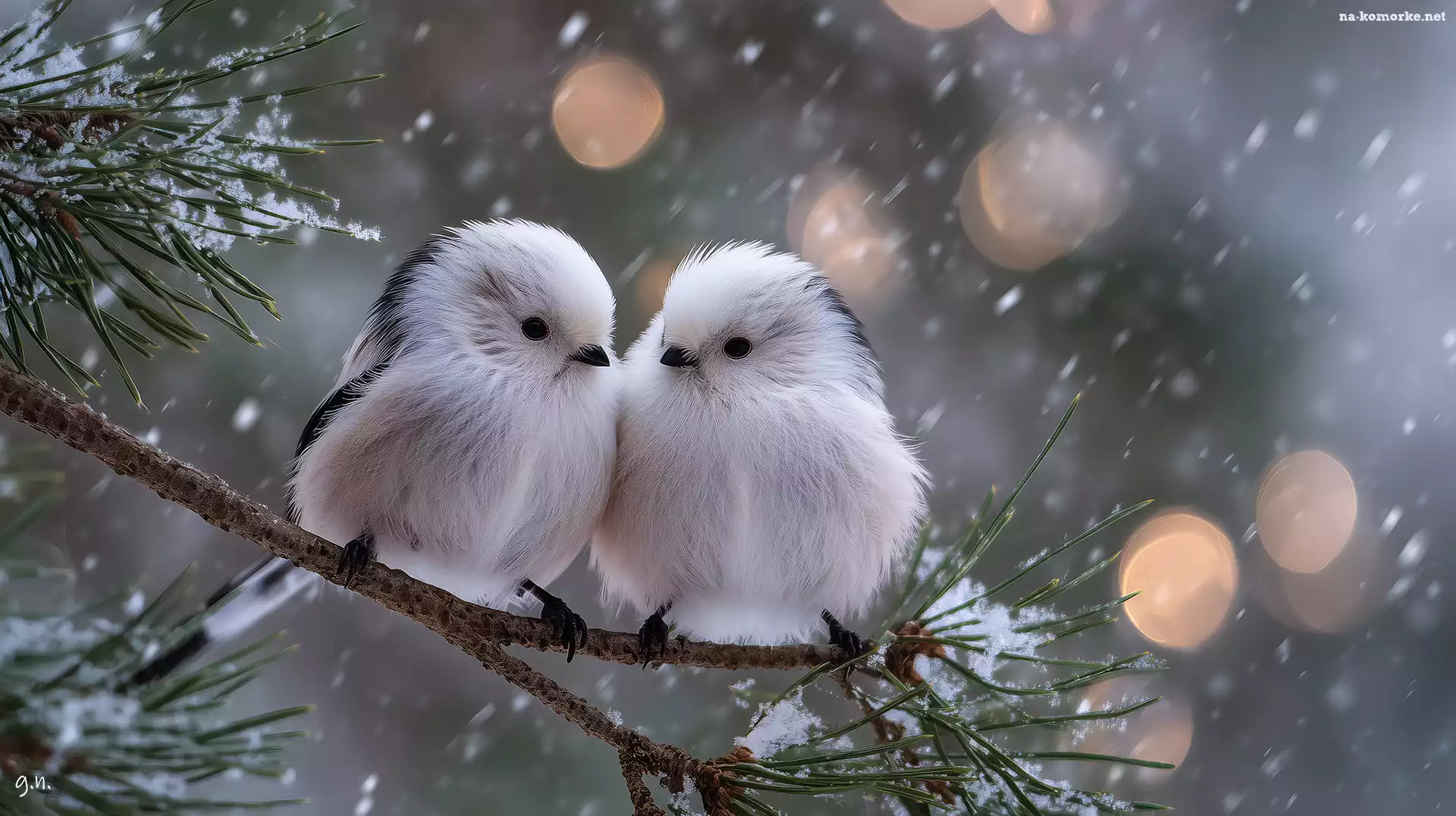 Śnieg, Zima, Dwa, Grafika AI, Ptaki, Sosna, Raniuszki na Komórkę