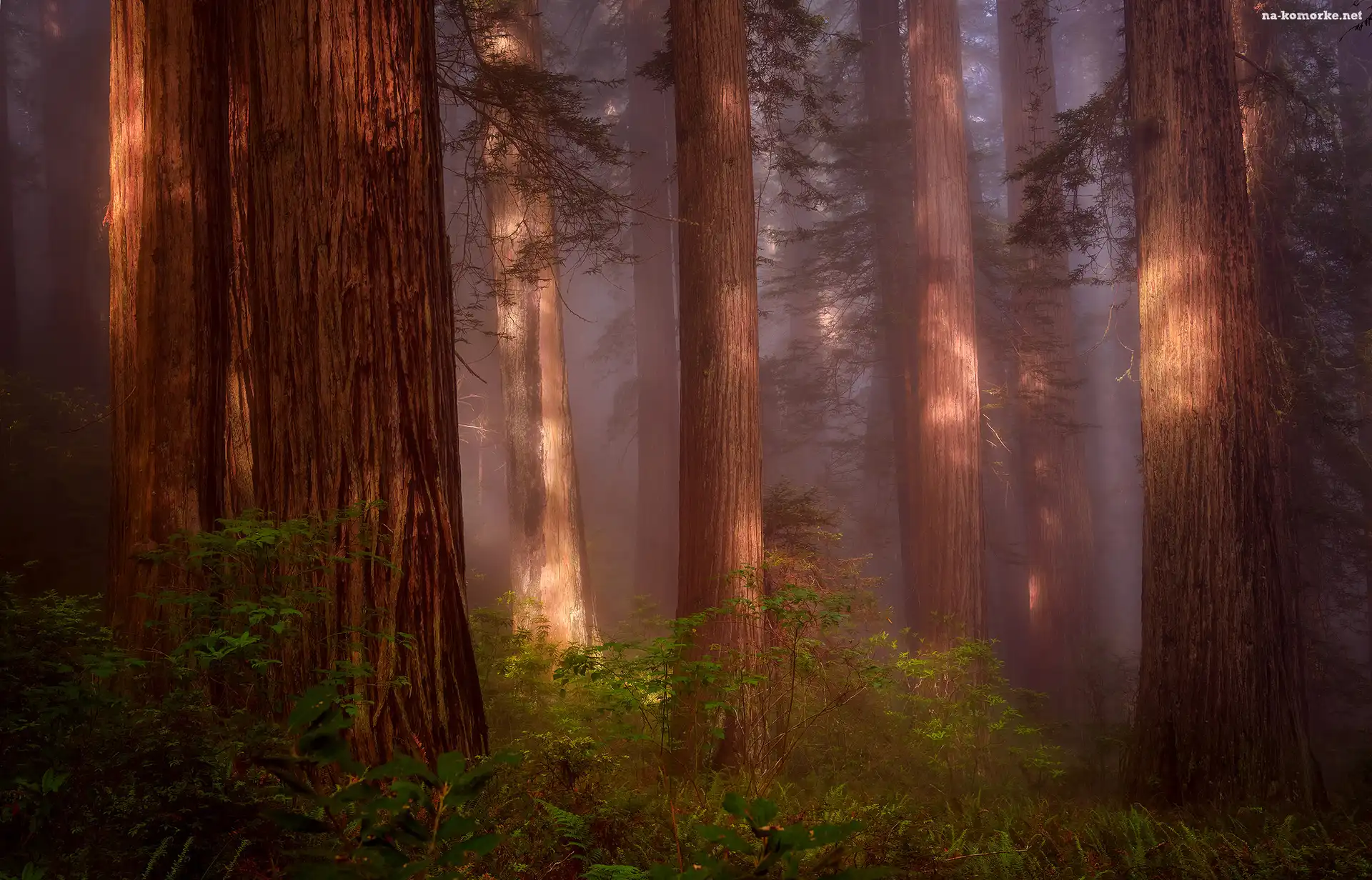 Stany Zjednoczone, Paprocie, Park Narodowy Redwood, Sekwoje, Stan Kalifornia, Las, Drzewa, Mgła na Komórkę |