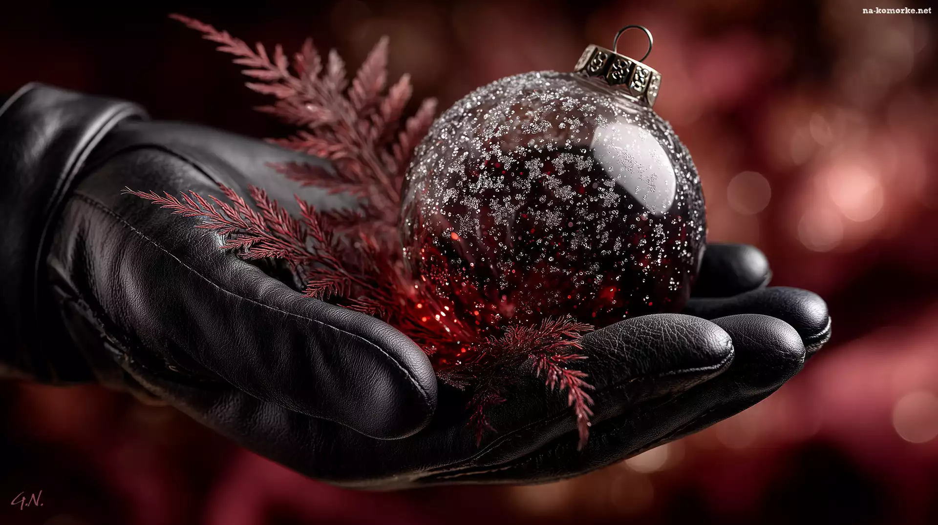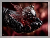 Rękawica, Dłoń, Boże Narodzenie, Grafika AI, Czerwona, Czarna, Bombka na Komórkę