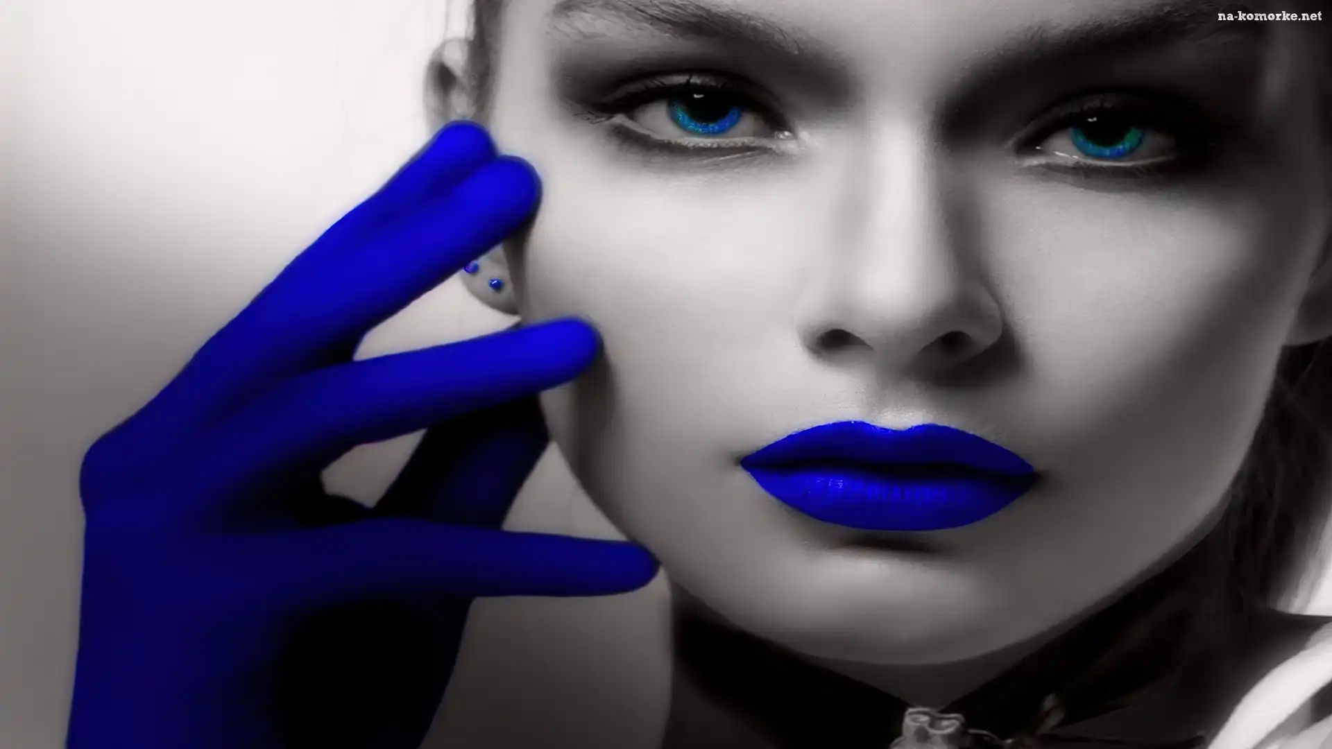 Rękawiczki, Twarz, Kobiety, Błękitne, Usta na Komórkę