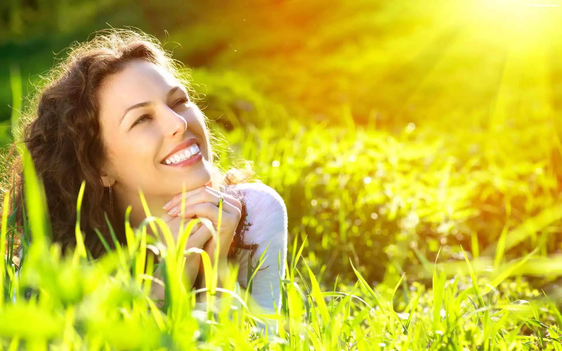 Relaks, Kobieta, Łąka, Promienie, Słońca na Komórkę