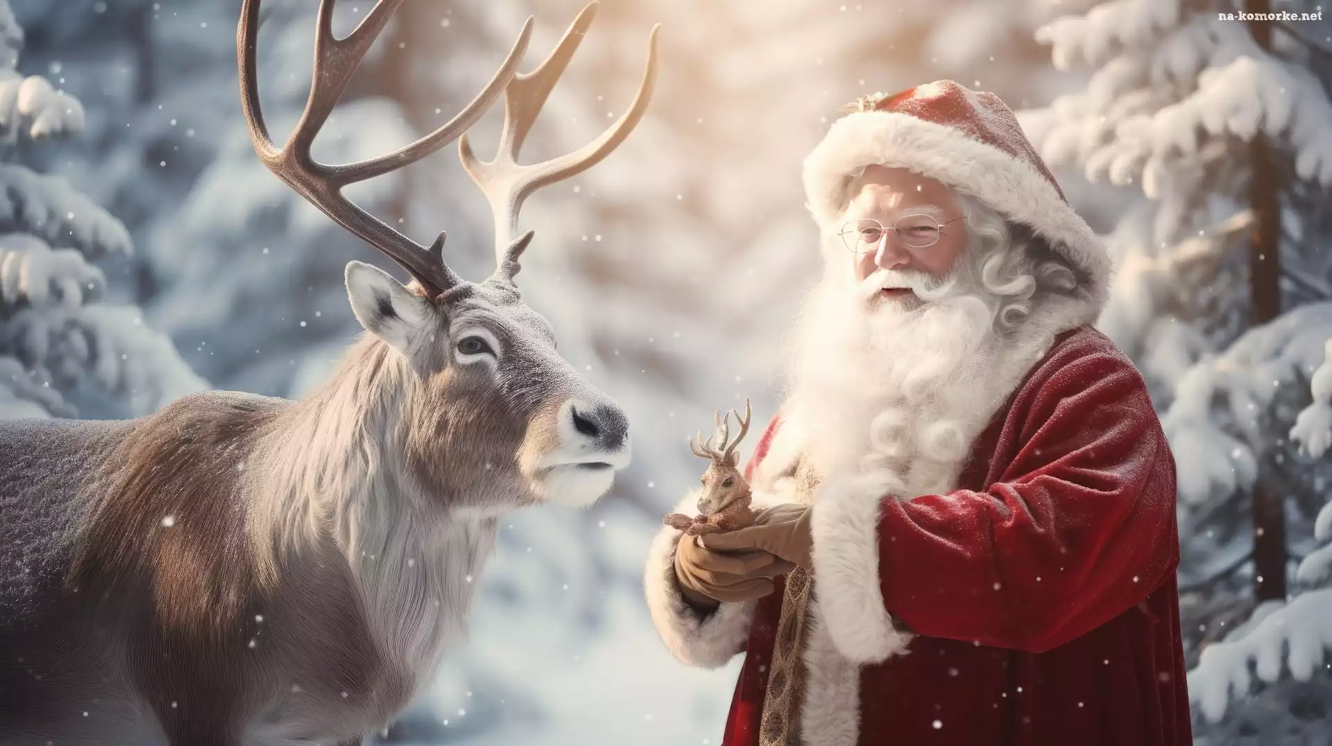 Zima, Grafika, Mikołaj, Renifer na Komórkę