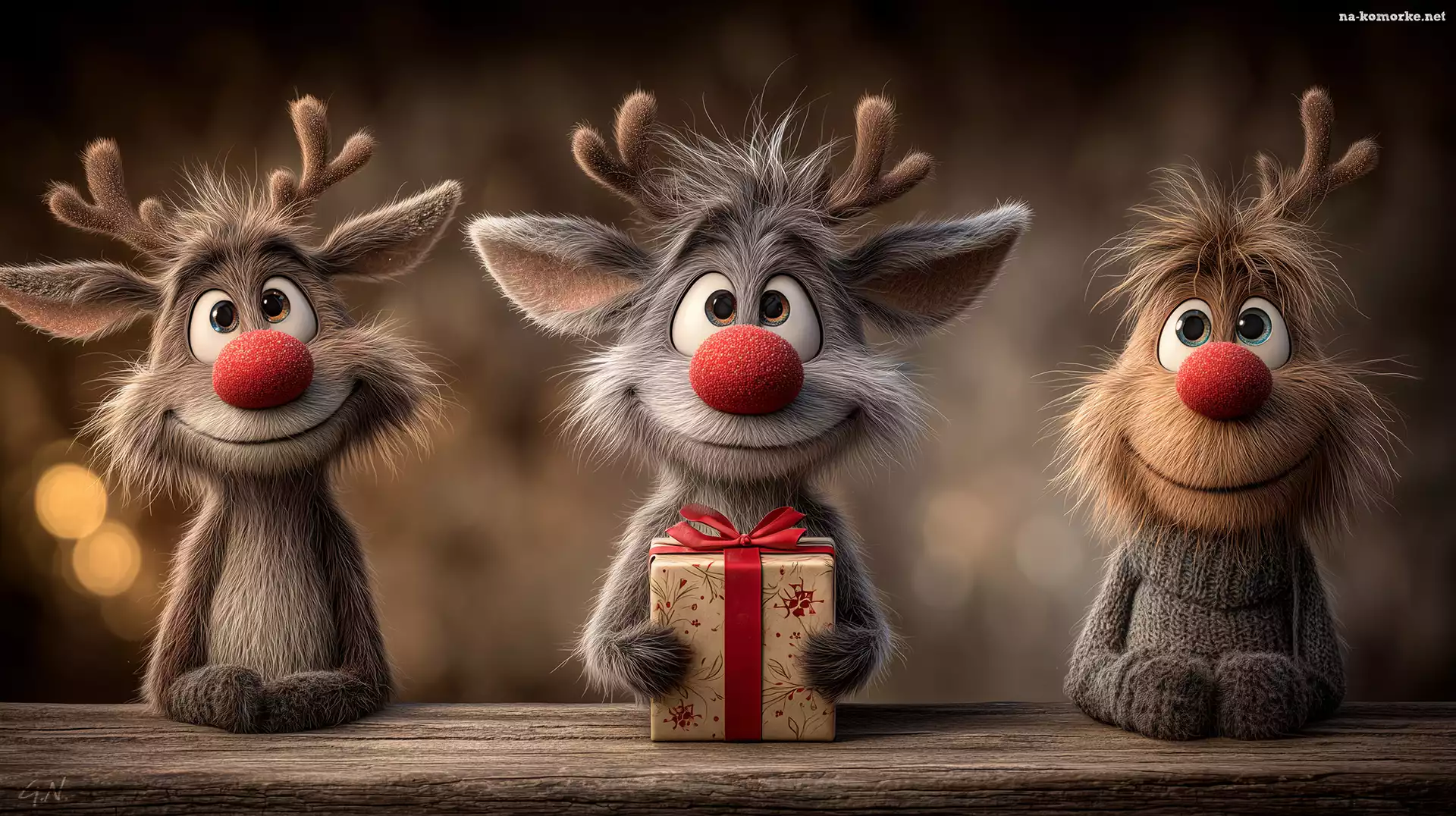 Trzy, Prezent, Świąteczne, Renifery, Grafika AI na Komórkę