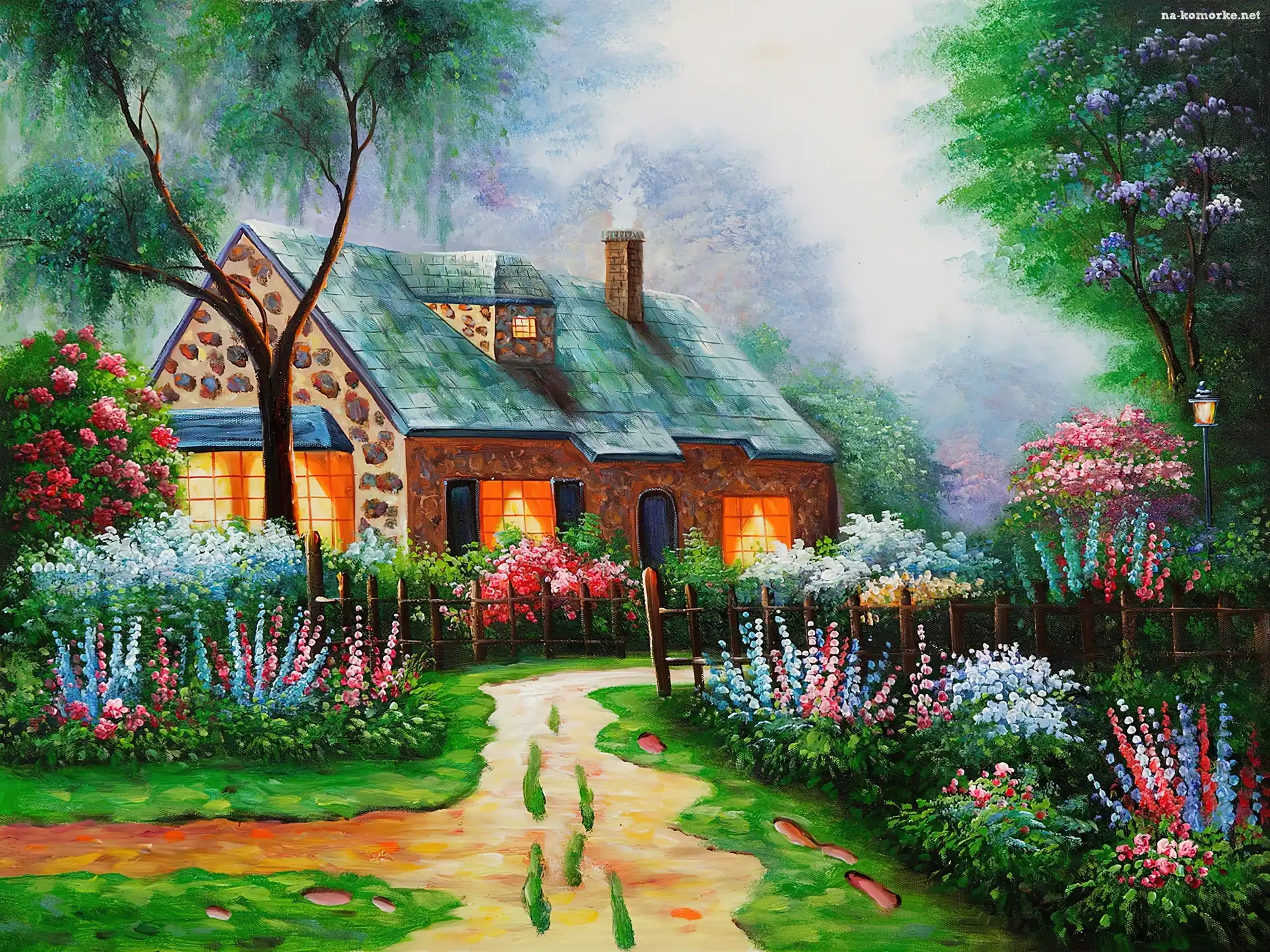 Reprodukcje Obrazów, Dom, Ogród, Kwiaty, Alejka na Komórkę