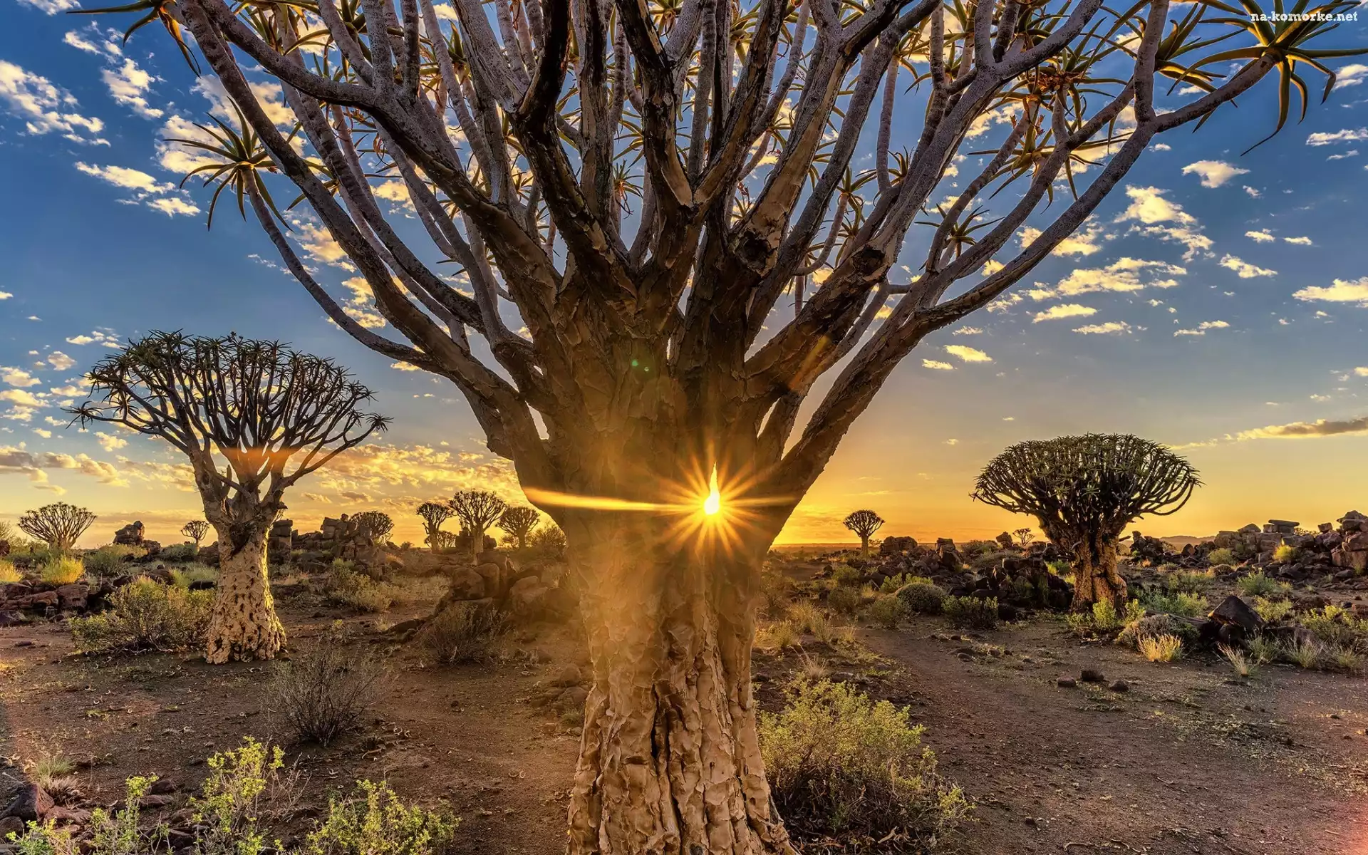 Kokerboom, Republika Namibii, Pustynia, Promienie słońca, Drzewa kołczanowe na Komórkę