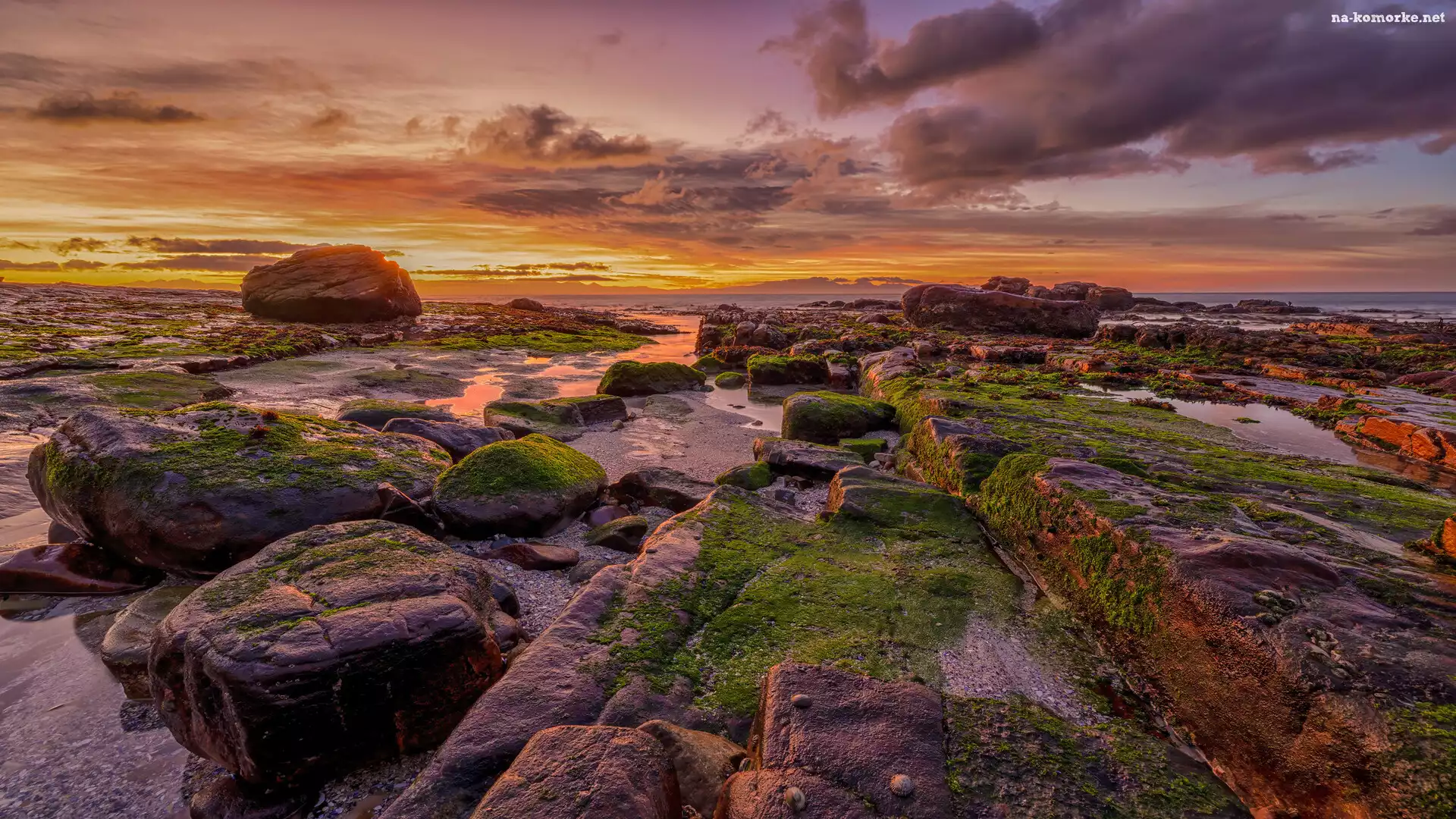 Republika Południowej Afryki, Wschód słońca, Przylądek Zachodni, Afryka, Muizenberg, Skały na Komórkę |