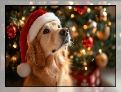 Mikołaja, Pies, Świętego, Grafika AI, Czapka, Golden retriever na Komórkę