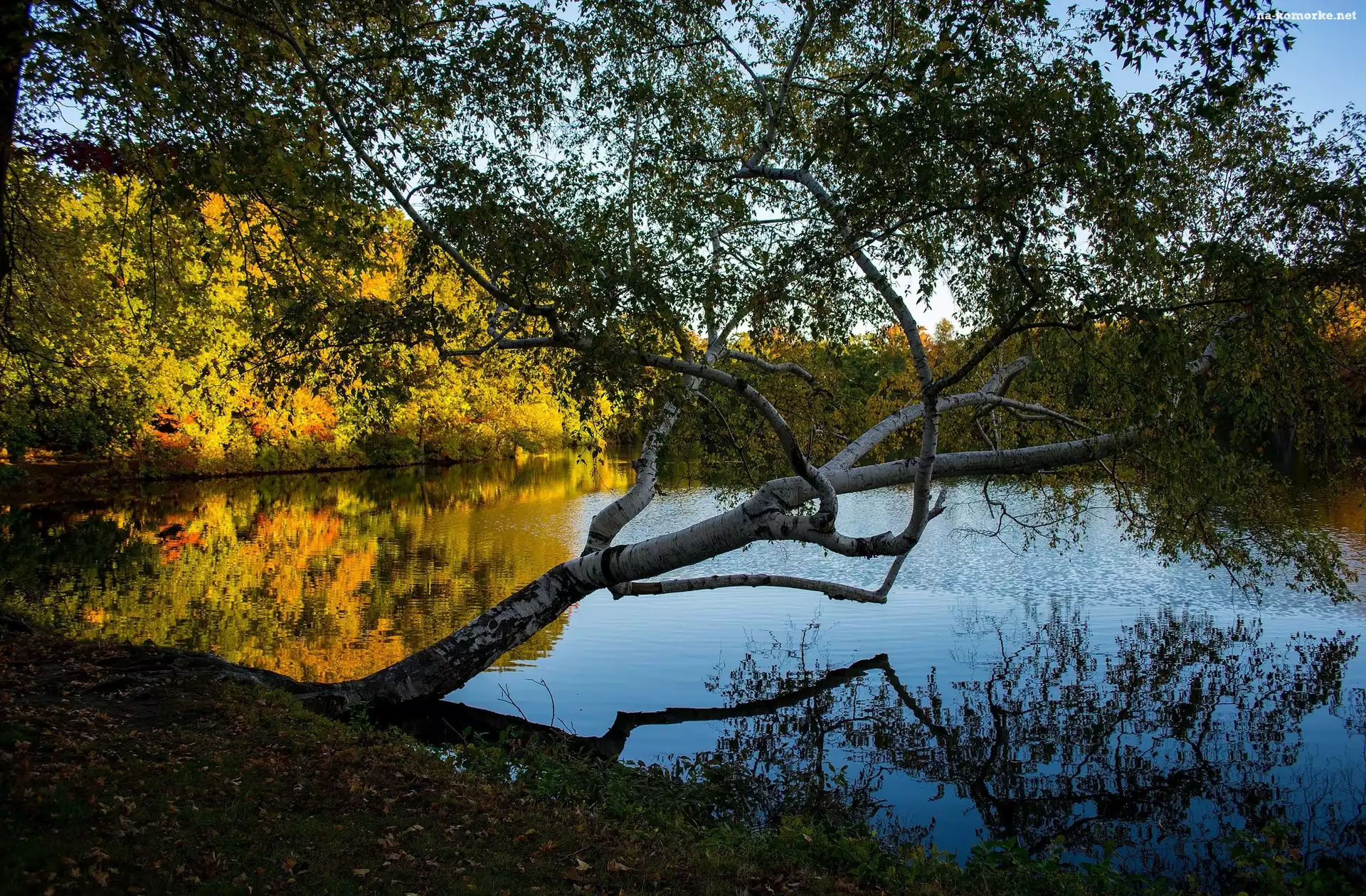 Stany Zjednoczone, Drzewa, Brzoza, Stan Rhode Island, Providence, Roger Williams Park, Jezioro na Komórkę |