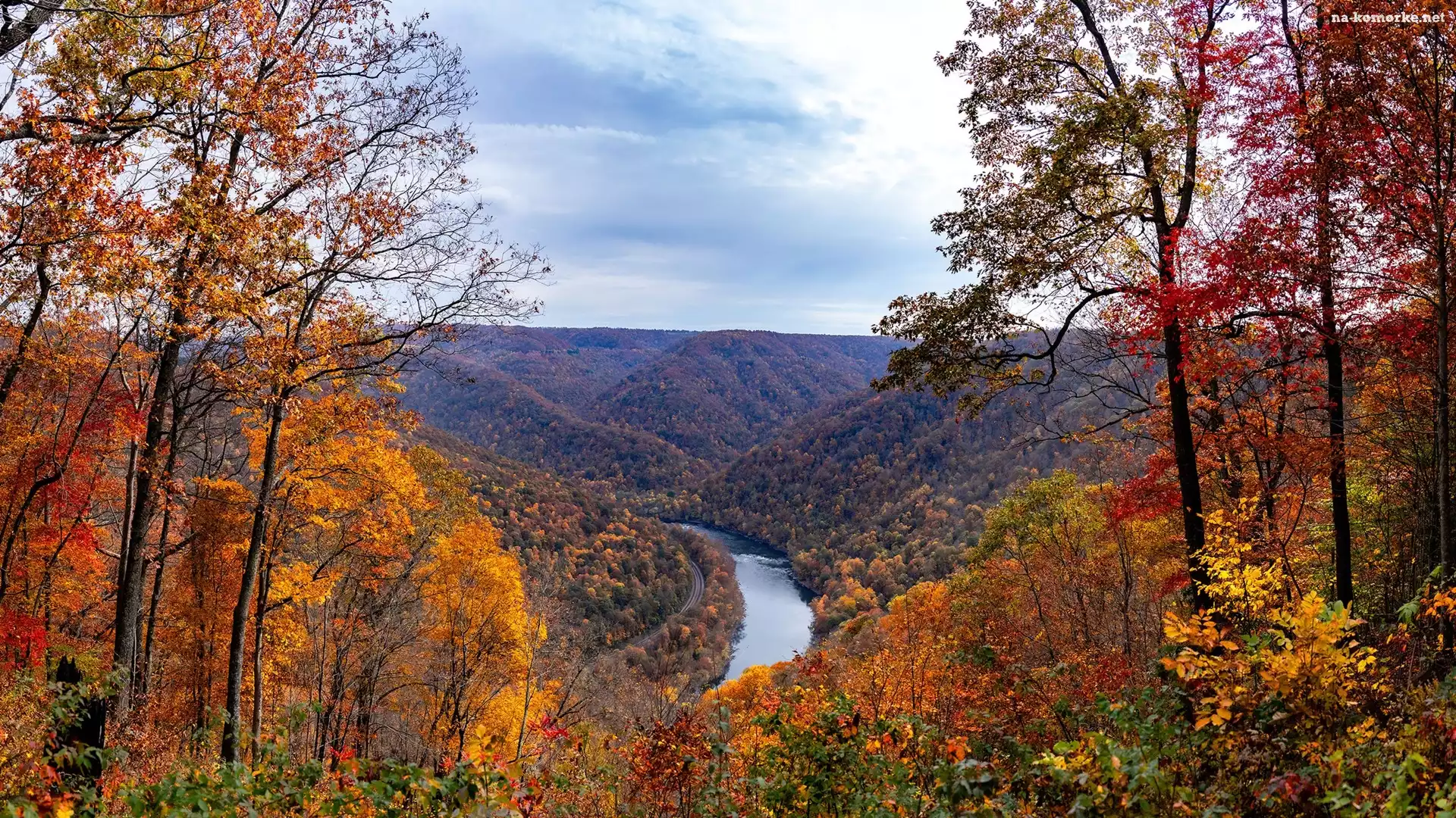 Wąwóz, Drzewa, New River Gorge Bridge, Stany Zjednoczone, Jesień, Lasy, Rzeka, Wirginia Zachodnia na Komórkę |