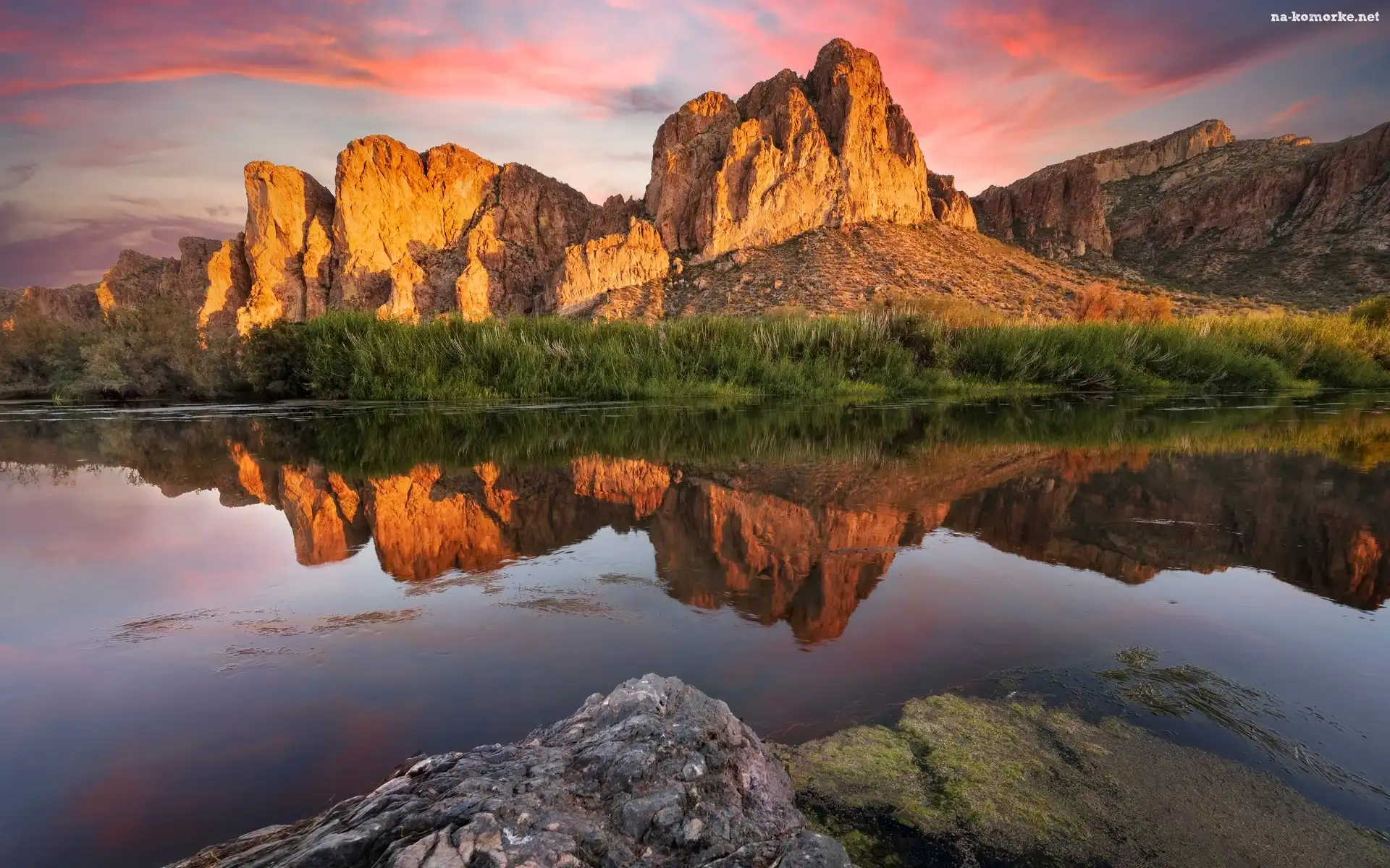 Góry, Roślinność, Rzeka, Stany Zjednoczone, Salt River, Odbicie, Goldfield Mountains, Arizona na Komórkę |