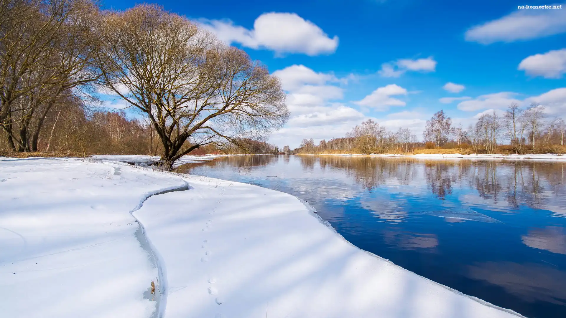Emajogi River, Drzewa, Zima, Estonia, Rzeka, Prowincja Tartu na Komórkę