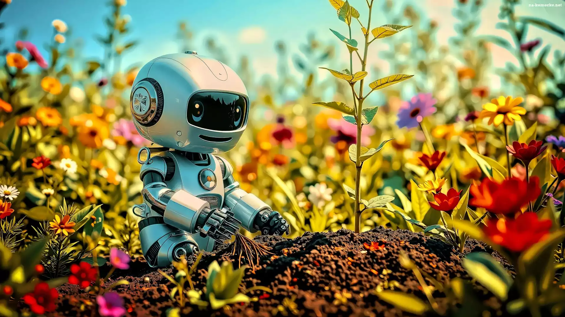 Robot, Kwiaty, Rośliny na Komórkę