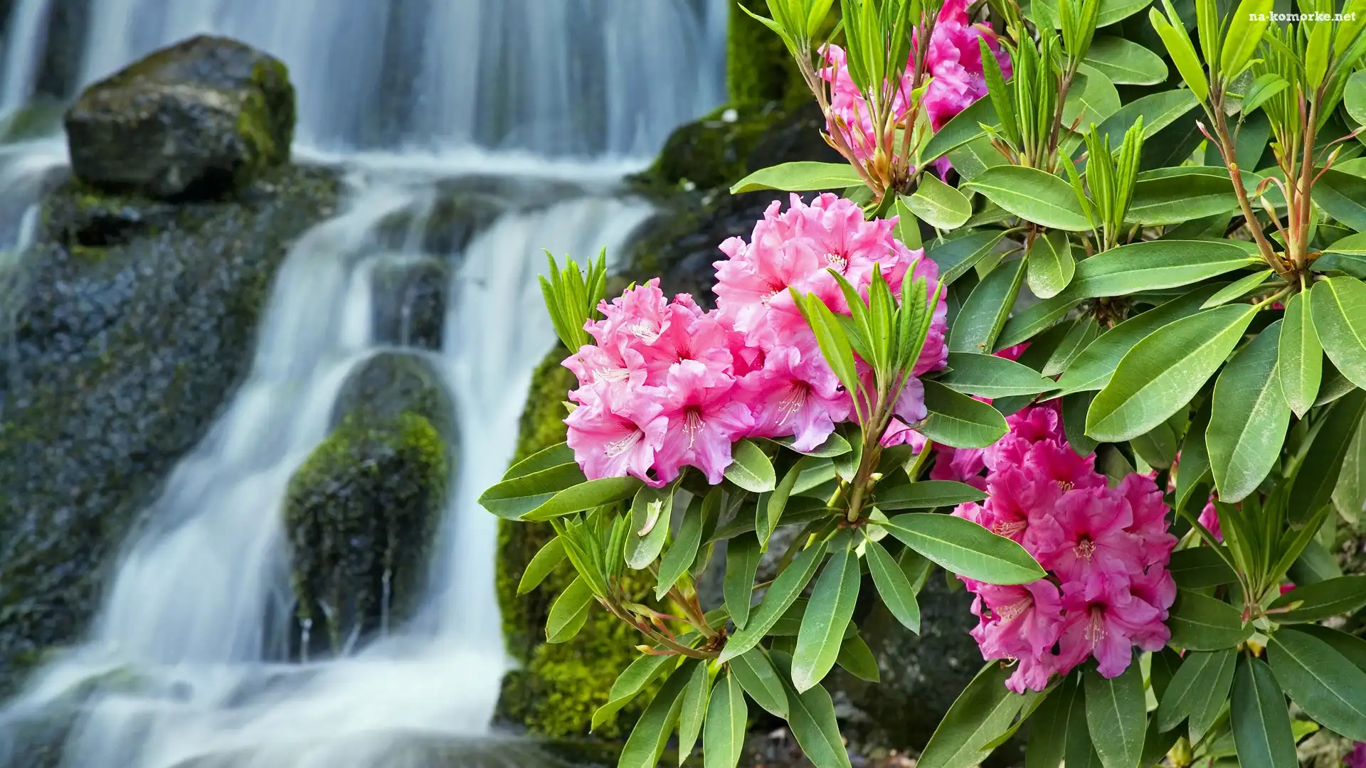 Różowy, Rododendron, Wodospad na Komórkę