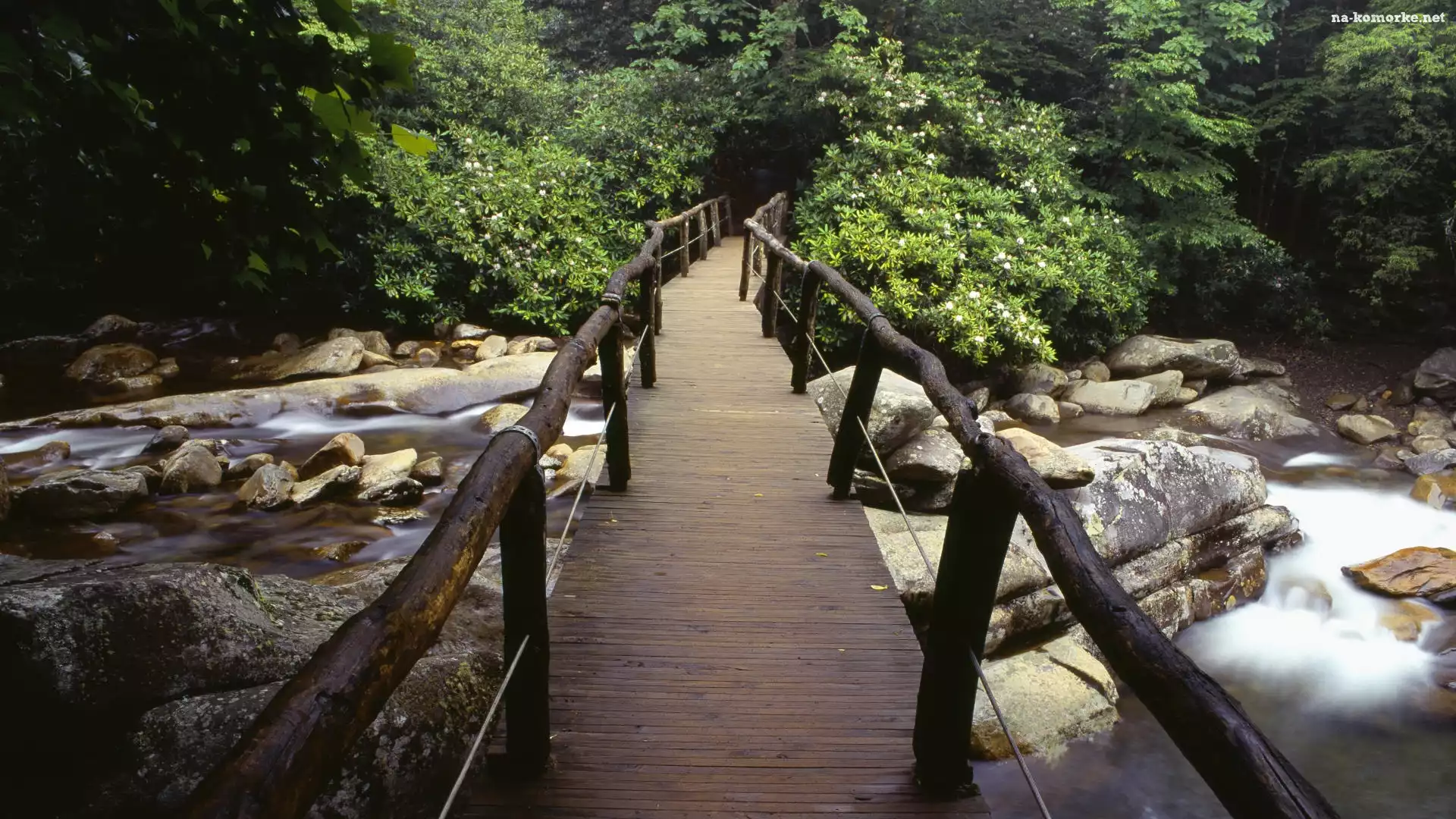 Rododendron, Most, Drewniany, Rzeka, Kamienie na Komórkę