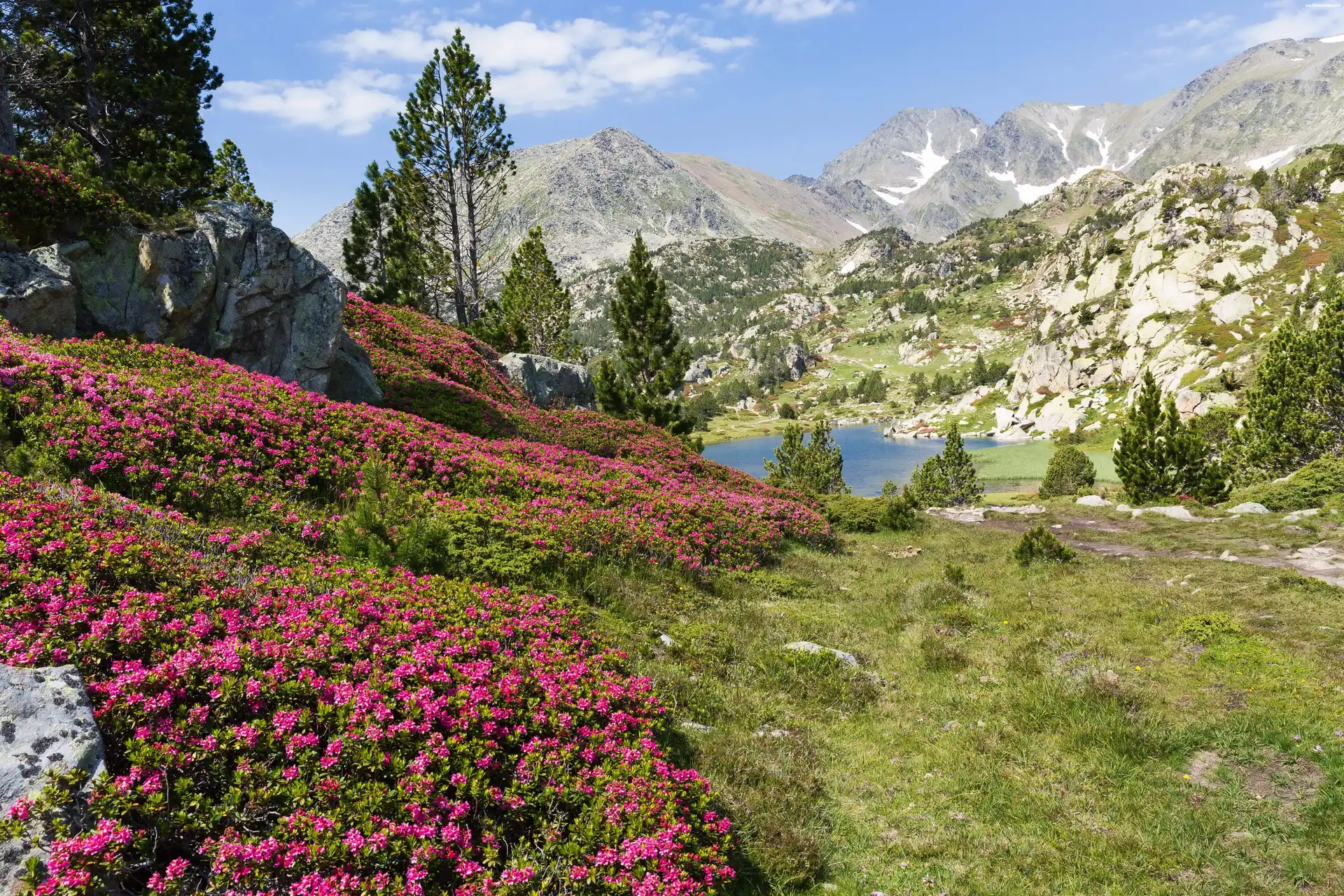 Rododendrony, Wiosna, Góry, Jezioro, Łąk na Komórkę