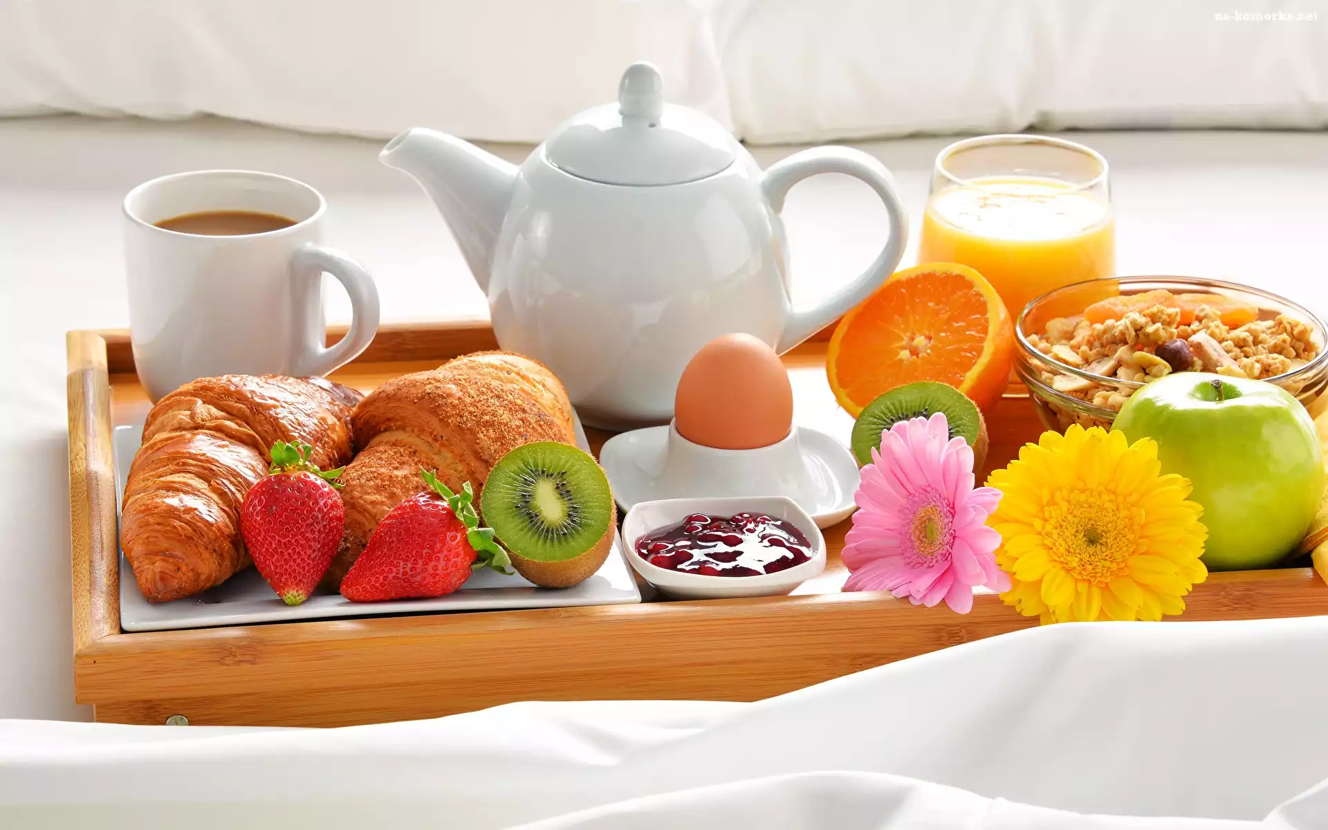 Rogale, Taca, Śniadanie, Jajko, Imbryk, Jabłko na Komórkę