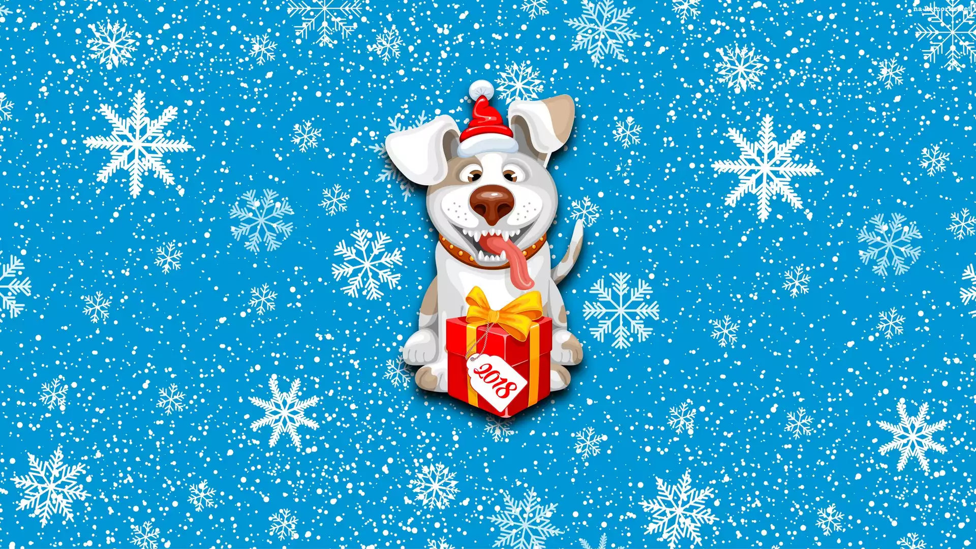 Nowy Rok, Tło, Gwiazdki, 2018, Pies, Prezent, Niebieskie na Komórkę