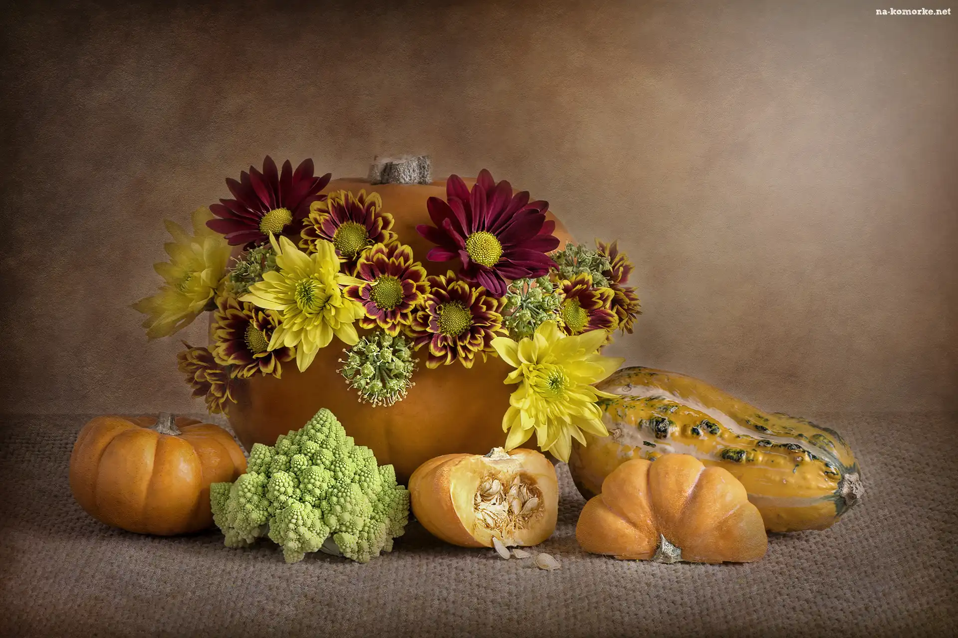 Romanesco, Kwiaty, Chryzantemy, Dynie, Kalafior zielony na Komórkę