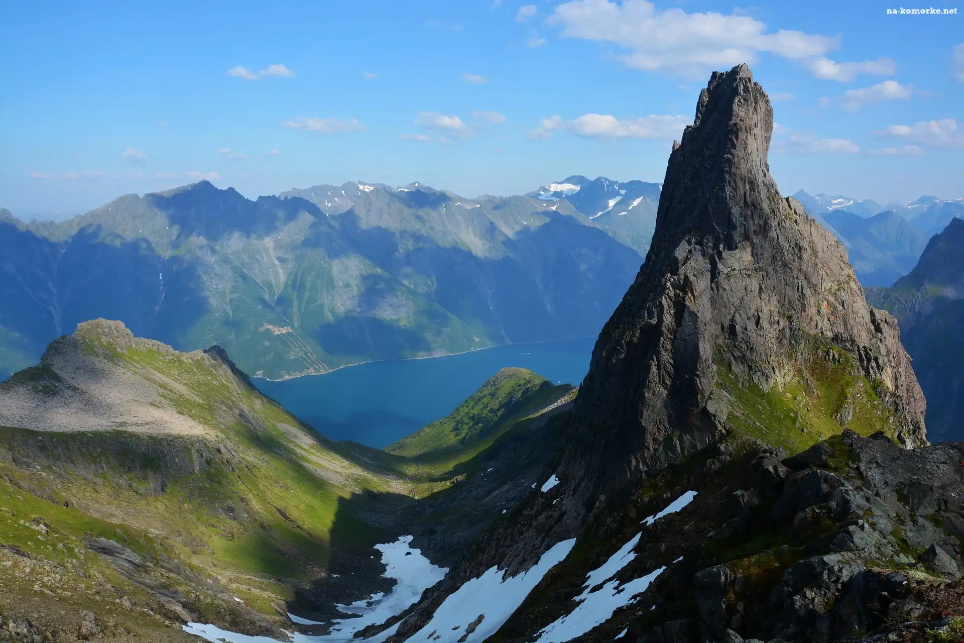 Fiord Hjorundfjorden, Góra Ystenes, Góry, Norwegia, Dolina, Okręg Romsdal na Komórkę