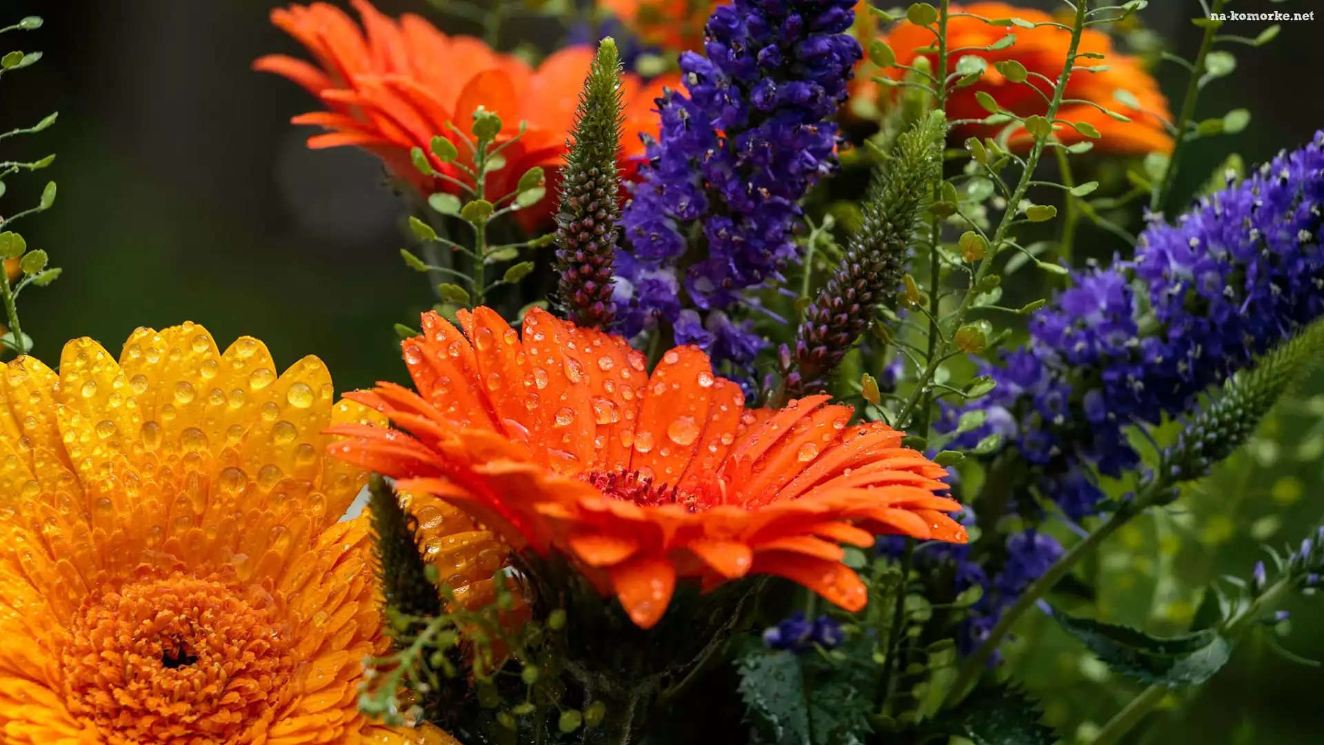 Rosa, Kwiaty, Bukiet, Gerbery, Krople na Komórkę
