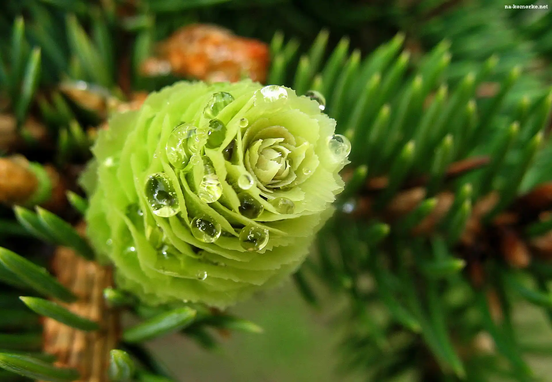 Rosa, Gałązka, Iglaka, Zielona, Szyszka na Komórkę