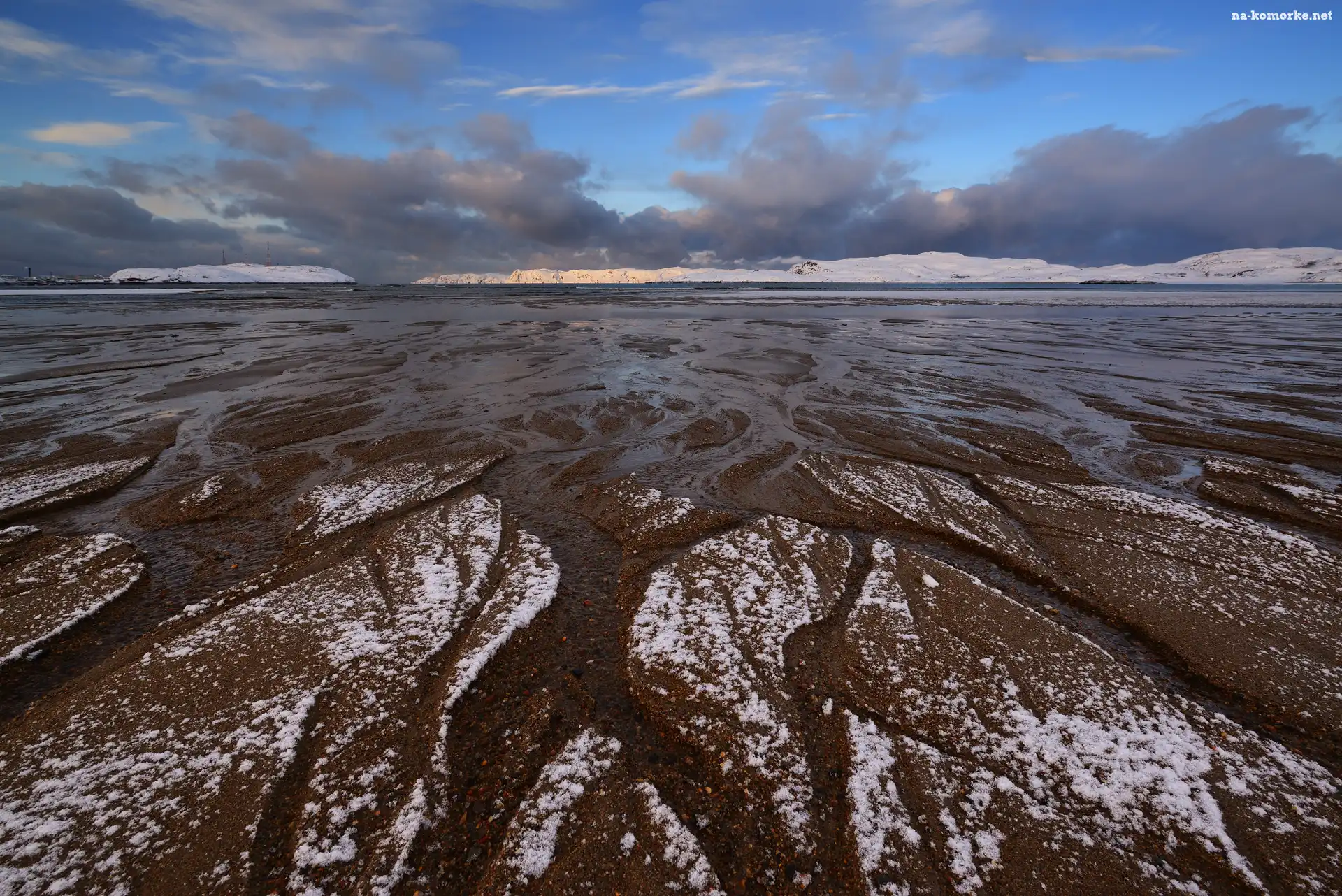 Zima, Obwód murmański, Miejscowość Teriberka, Rosja, Góry, Brzeg, Morze Barentsa, Zatoka Kolska na Komórkę |